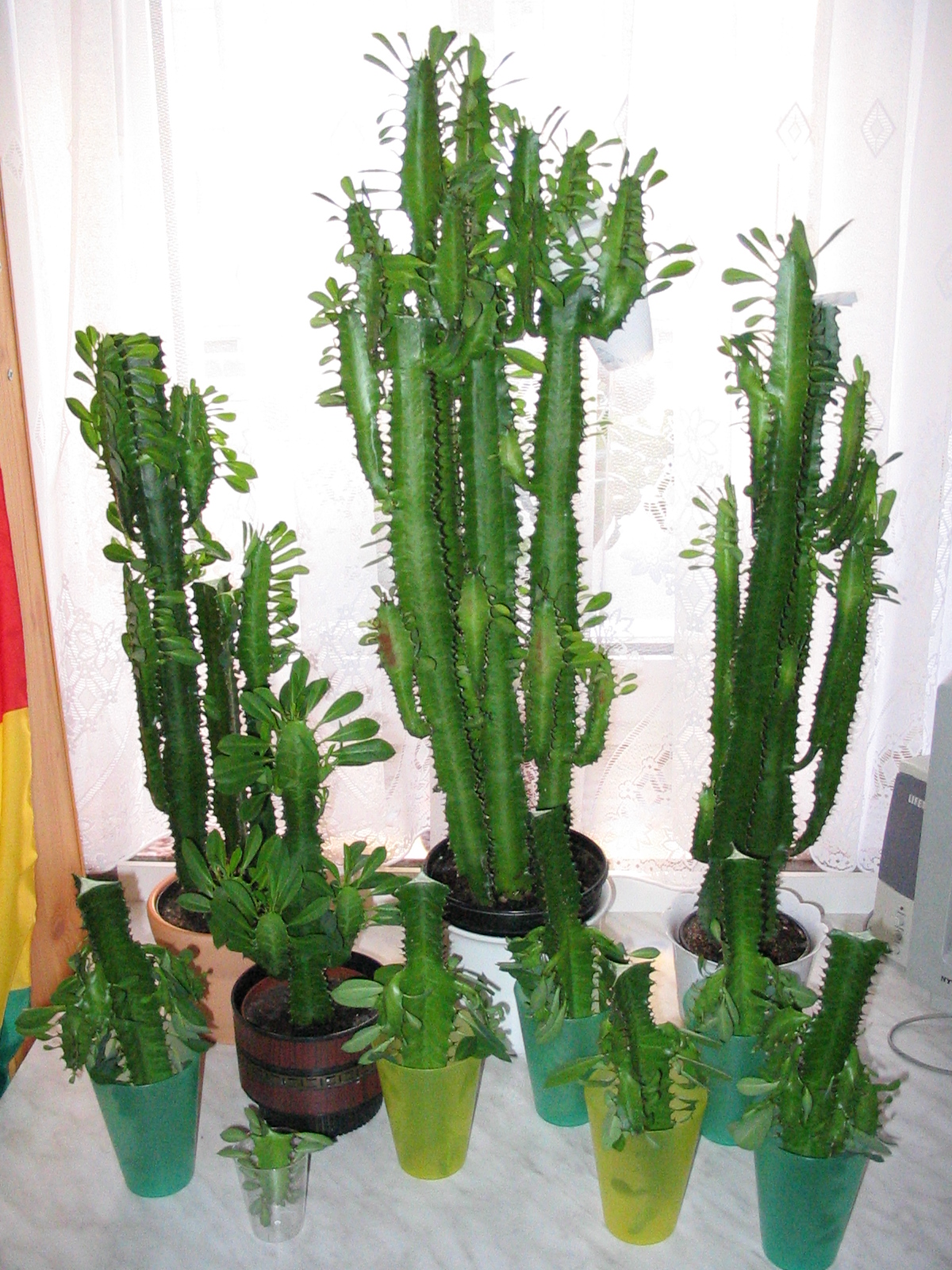 Ich stell euch mal meine ganze trigona-Familie vor und möchte gern wissen, ob ich auch jetzt im Herbst die Riesen noch kappen kann, so daß die Enden auch anwurzeln.
