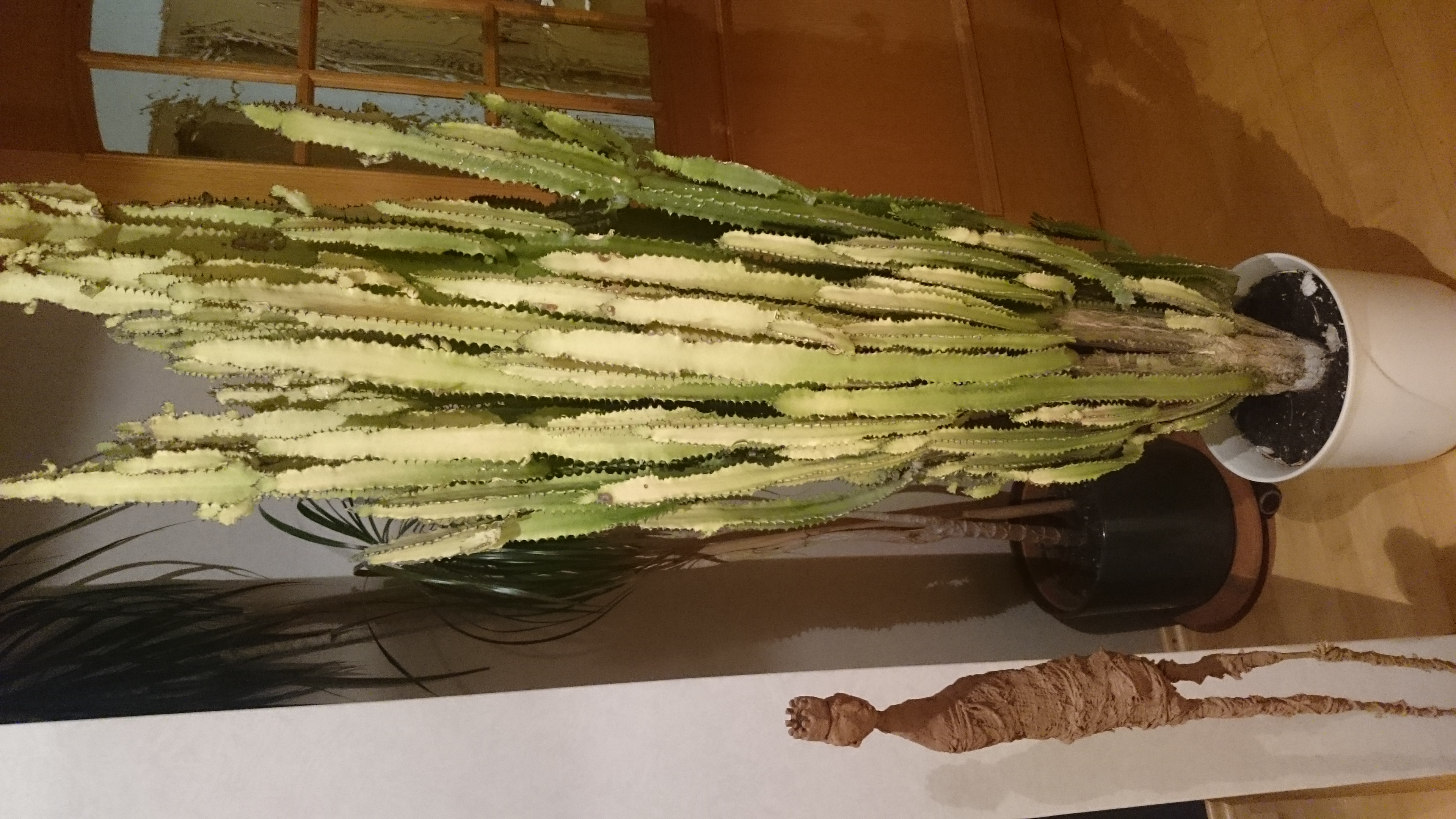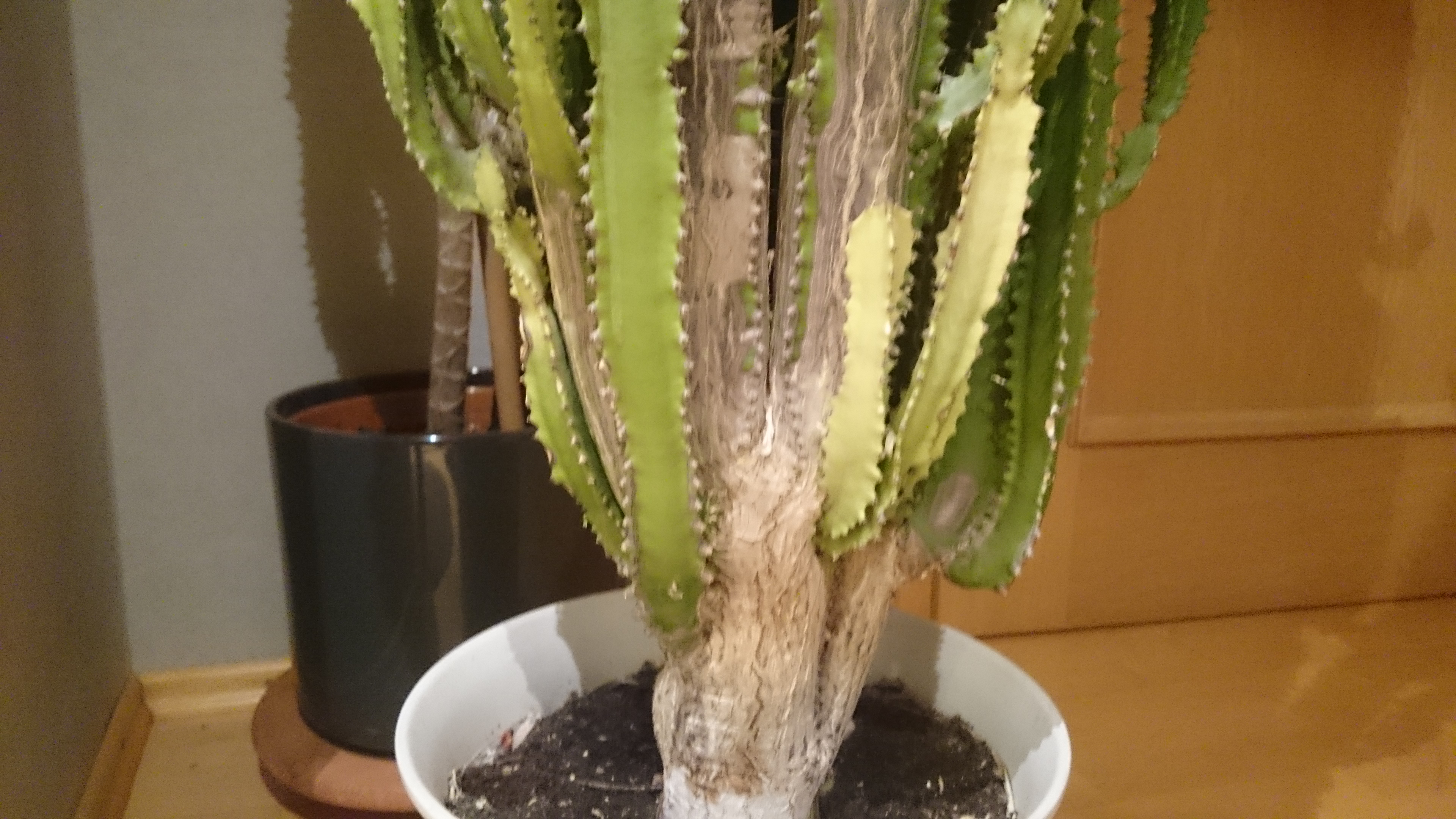 ich habe gestern eine Euphorbia Trigona gekauft, welche aber meiner Meinung nach nicht ganz gesund ist. Die Pflanze ist ungefähr 30 Jahre alt, der Stamm ist holzig und fest. Auch die einzelnen Äste sind fest. Allerdings fast überall hellgrün bis gelblich verfärbt.