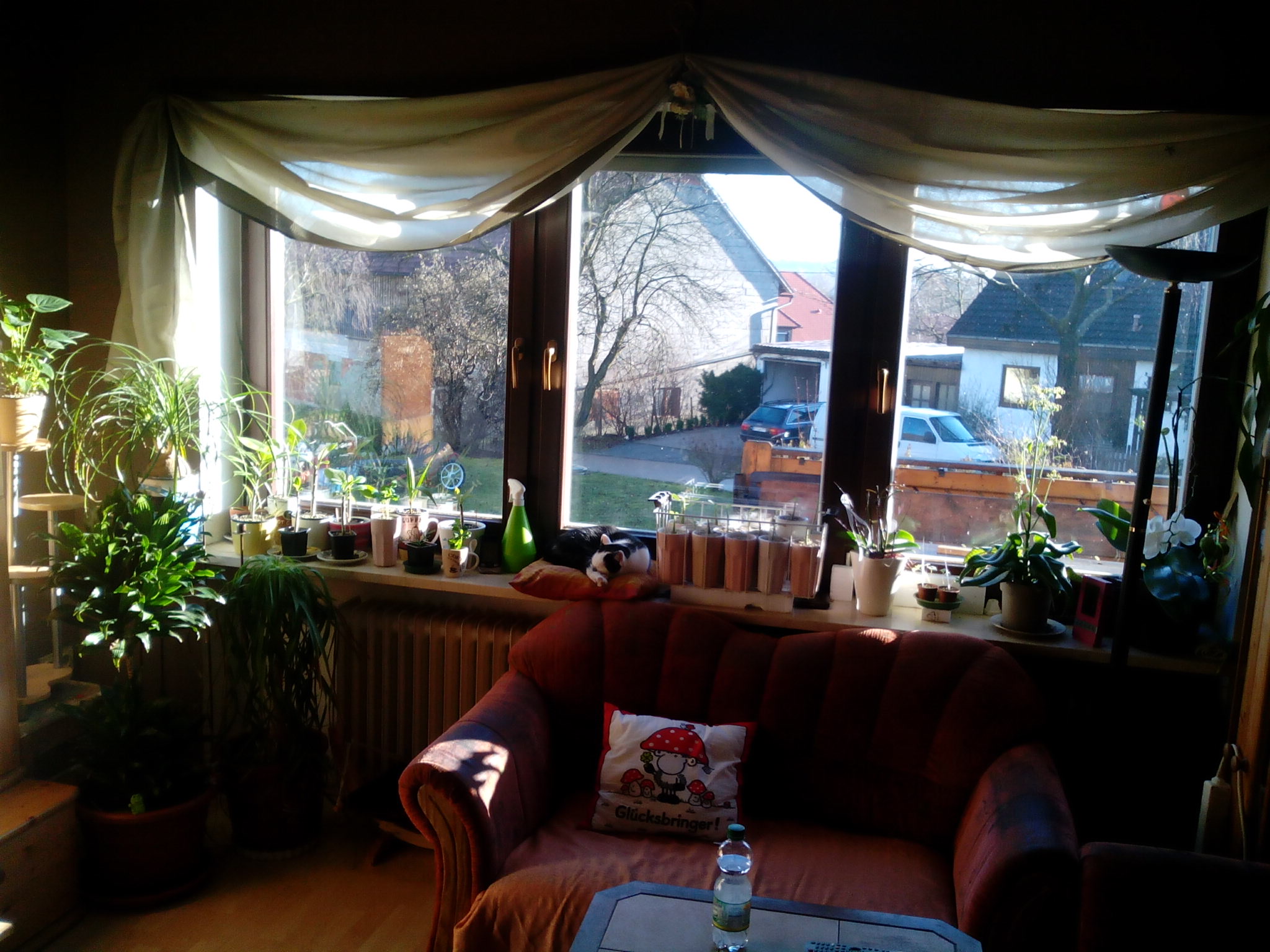 Das ein zigste Fenster im Wohnzimmer wo ich was reinstellen kann ist das kleine zum Hof hin...