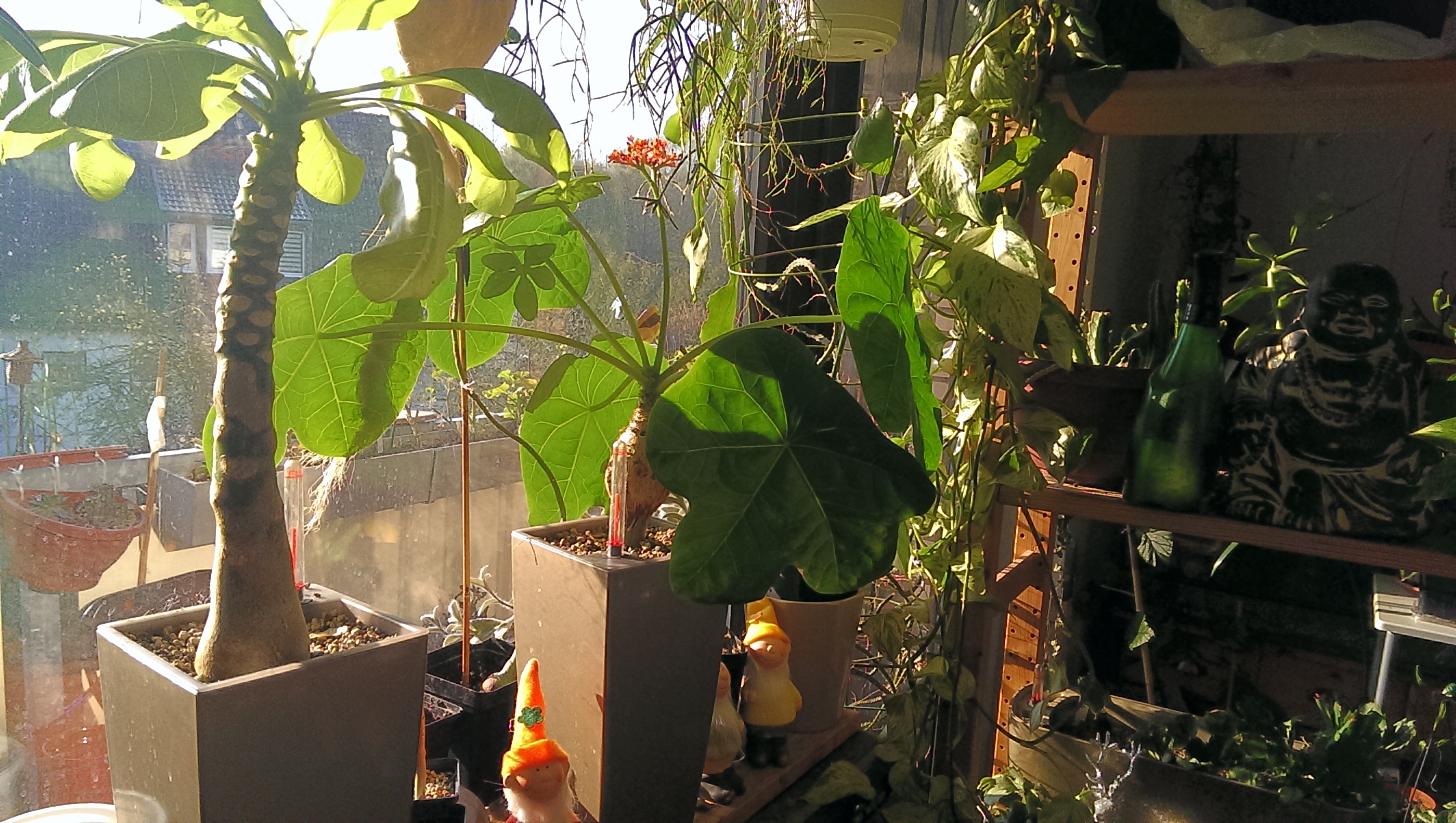 Ich hoffe dass der Linke sich jetzt genauso gut aufrichtet wie die zwei äußeren im kleinen Wohnzimmerfenster!