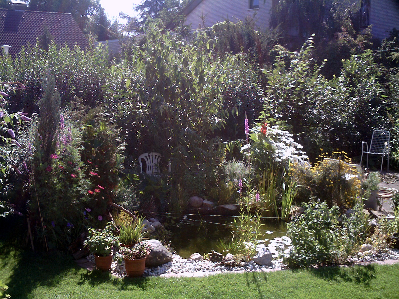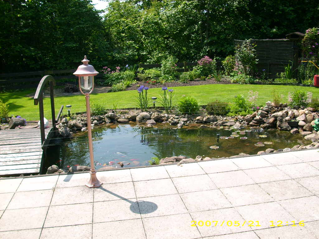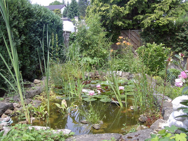 ganz tolle Teiche habt Ihr - da kann man wirklich manchmal neidisch werden. Den Thread habe ich erst gerade entdeckt und just heute war ich bei meinem Vater, der dieses Jahr weitgehend das Rasengrundstück zum Teich umgewandelt hat und gerne wollte, dass ich ihm beim Fotografieren für einen Fotowettberwerb helfe. Daher habe ich nun auch einige Fotos vom Teich.