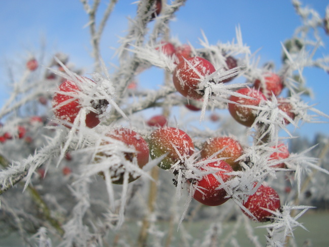 Auch wenn der Winter im Großen und Ganzen total öde ist für gärtnernde Menschen, bietet er doch hin und wieder auch ein paar schöne Anblicke. Wollen wir diese Lichtblicke also sammeln und uns an ihnen ergötzen, so das wir nicht depressiv werden. Nehmet und gebet alle dafür...