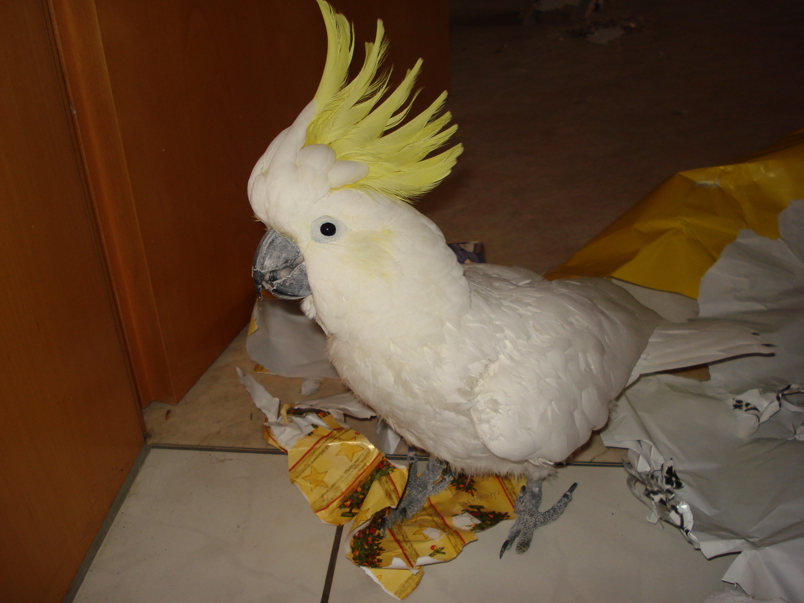 ich habe meinem Kakadu ein Geschenk gemacht .
