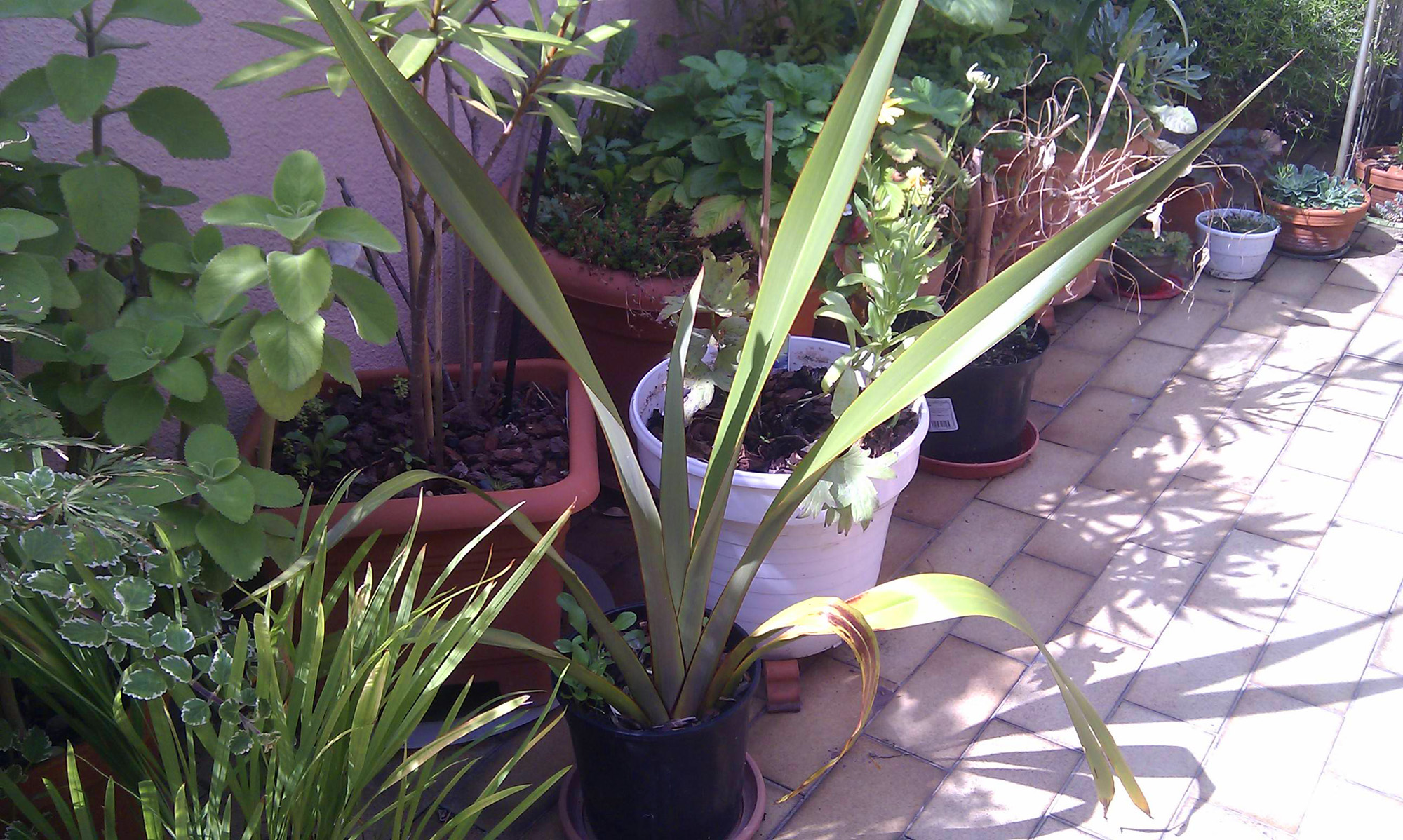 Hat jemand eine Idee, was es sein könnte? (Es geht um die große Pflanze in der Mitte mit den fächerförmig angeordneten Blättern)