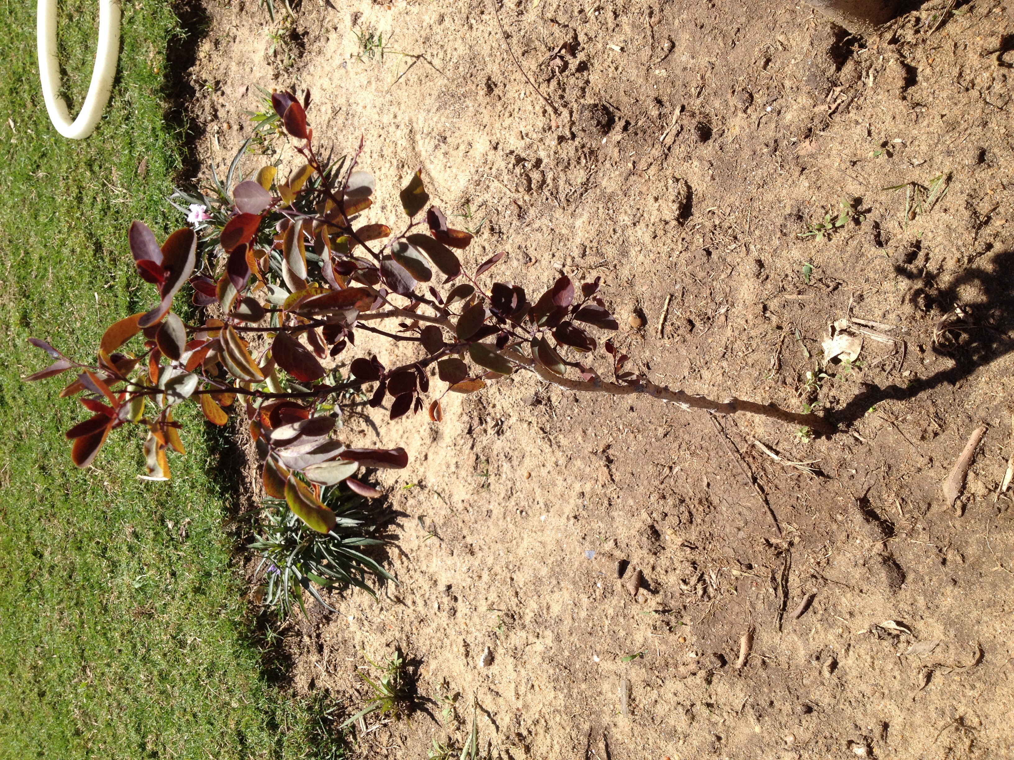 Kandidat 2: ein Baeumchen (?) mit rotbraunen und gruenen Blaettern. Keinerlei weitere Infos wie gross es mal wird oder ob und wie es blueht.
