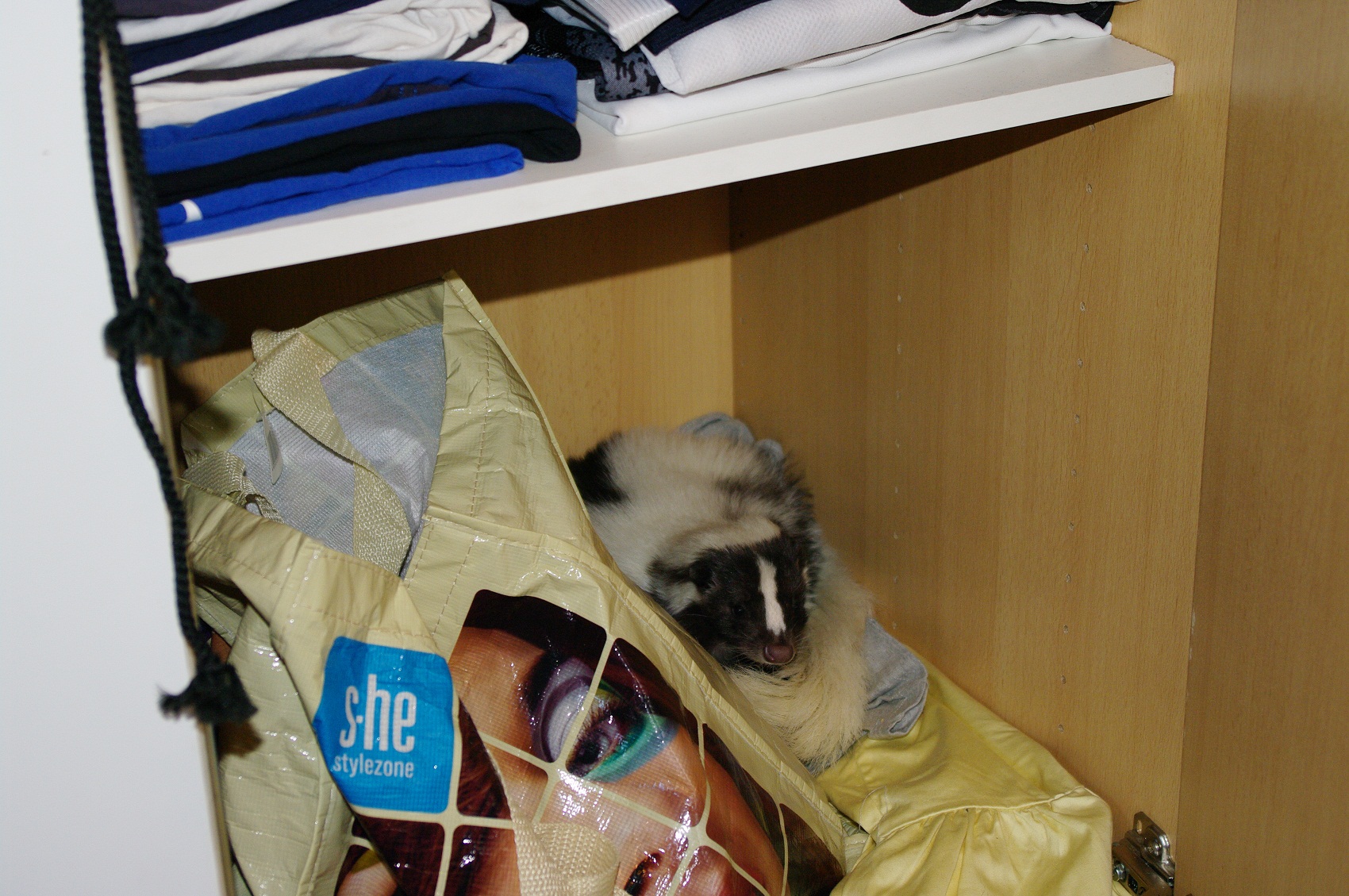 Obwohl es an Amy liegt, die verteidigt mich sehr vehement gegen andere Tiere, und hasst es wenn ich nen anderen Skunk, Katze oder ähnliches auf dem Arm hab