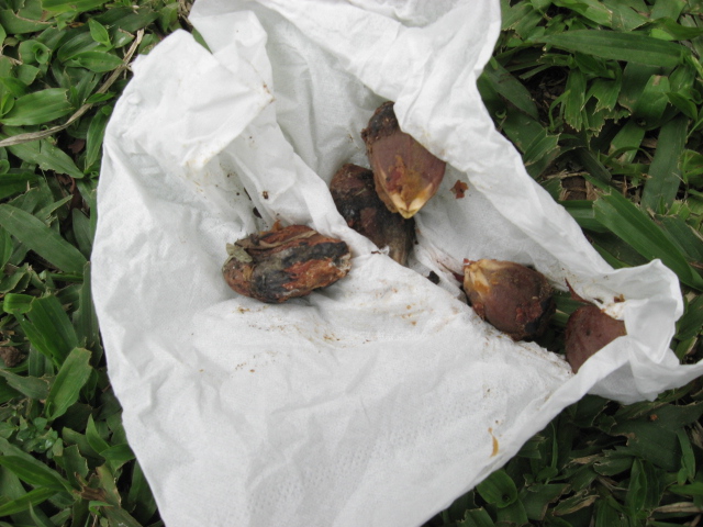 von meinem letzten Indonesienurlaub habe ich mir aus dem botanischen Garten am Boden liegende Samen mitgenommen. Da sie im Palmenbereich lagen, dachte ich, es handele sich um Palmensamen. Aber jetzt, nachdem (fast alle! innerhalb von 4 Wochen!) gekeimt sind, habe ich festgestellt, dass es keine Palmen sein können, welche ja einkeimblättrig sind.
