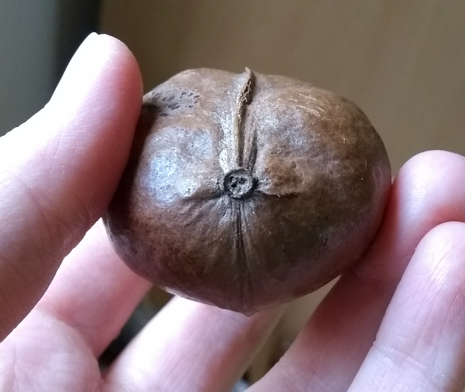Ich habe auf einem Markt einen großen Samen gekauft. Er klappert beim Bewegen, hat also Inhalt. Der Verkäufer sagte, er stammt aus Mauritius.