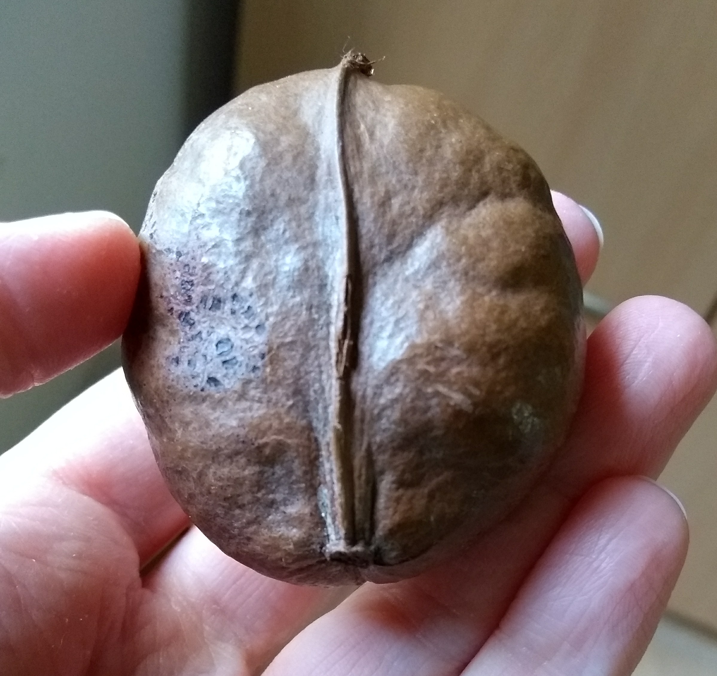Ich habe auf einem Markt einen großen Samen gekauft. Er klappert beim Bewegen, hat also Inhalt. Der Verkäufer sagte, er stammt aus Mauritius.