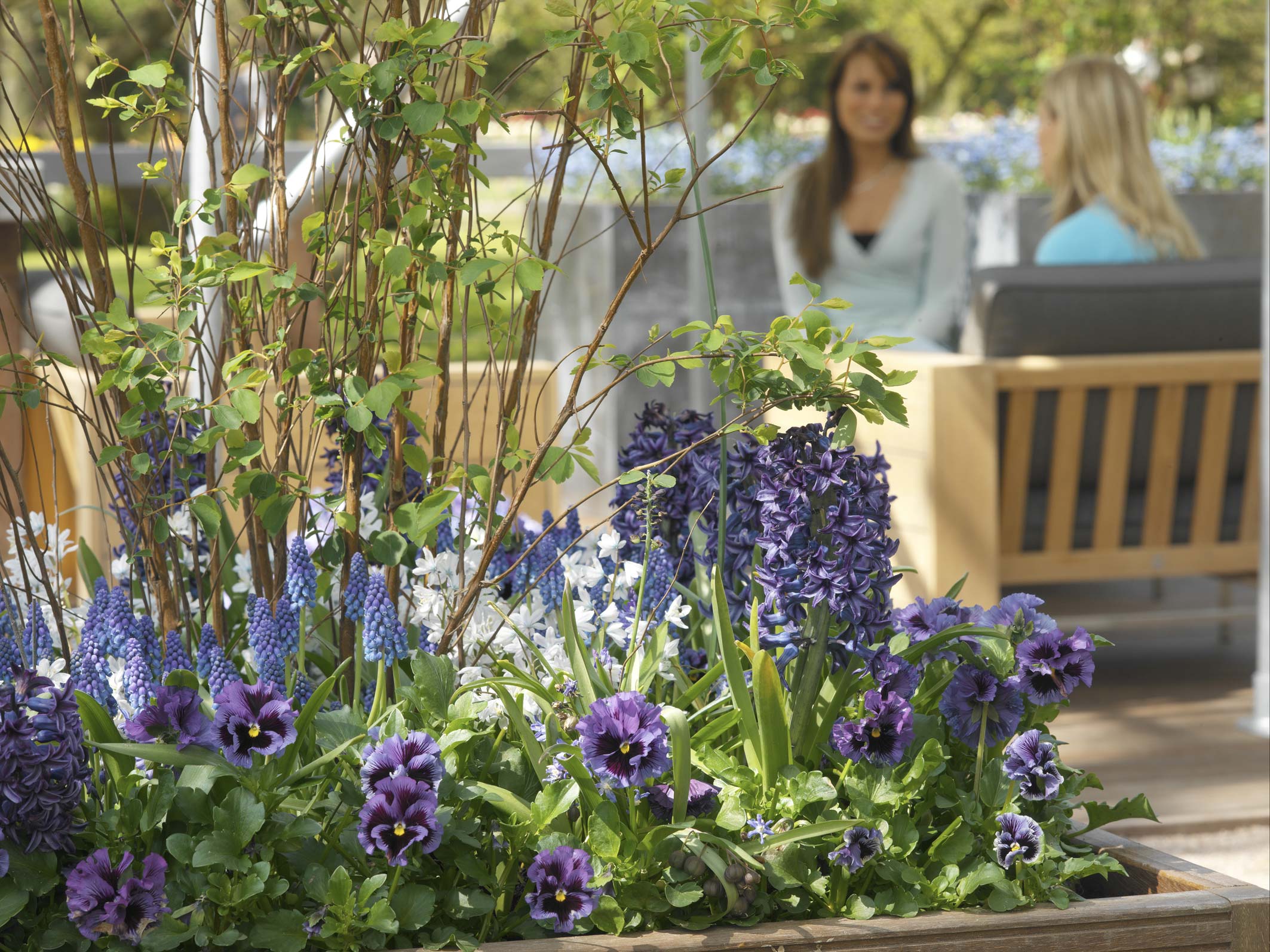 Der Traum einer Blumenwiese kann sich auch auf dem Balkon oder der Terrasse erfüllen. Eine ?Wiese? aus Schlüsselblumen, Narzissen oder Tulpen entsteht, wenn mehrere Töpfe und Schalen mit den gleichen Frühlingsblühern dicht nebeneinander gestellt werden. Einzelne Ziergräser sorgen für natürlichen Charme.