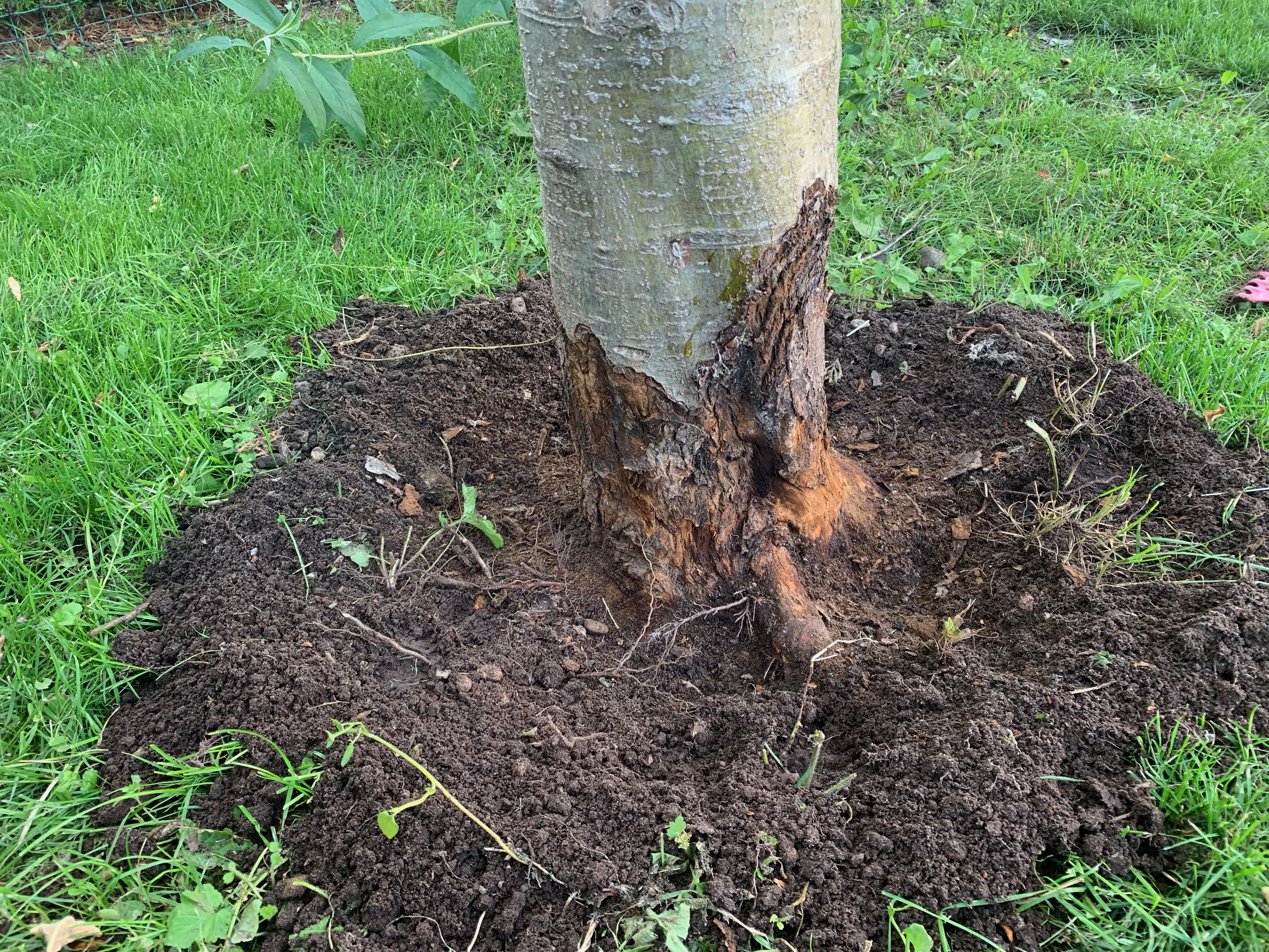 Mein über die Jahre hinweg gesunder, noch „junger“ Apfelbaum (9 Jahre) zeigt dieses Jahr einen gefährlichen Befall am Stammbeginn. Rundum fault die Rinde und sie wurde schon bewohnt von Kellerasseln. Ich habe nun das Unkraut darum entfernt um die Feuchtigkeit zu reduzieren und mit Brennesselsud die letzen Wochen behandelt, aber es ändert sich nichts. Im Gegenteil scheint die Krankheit schnell nach oben zu wandern.