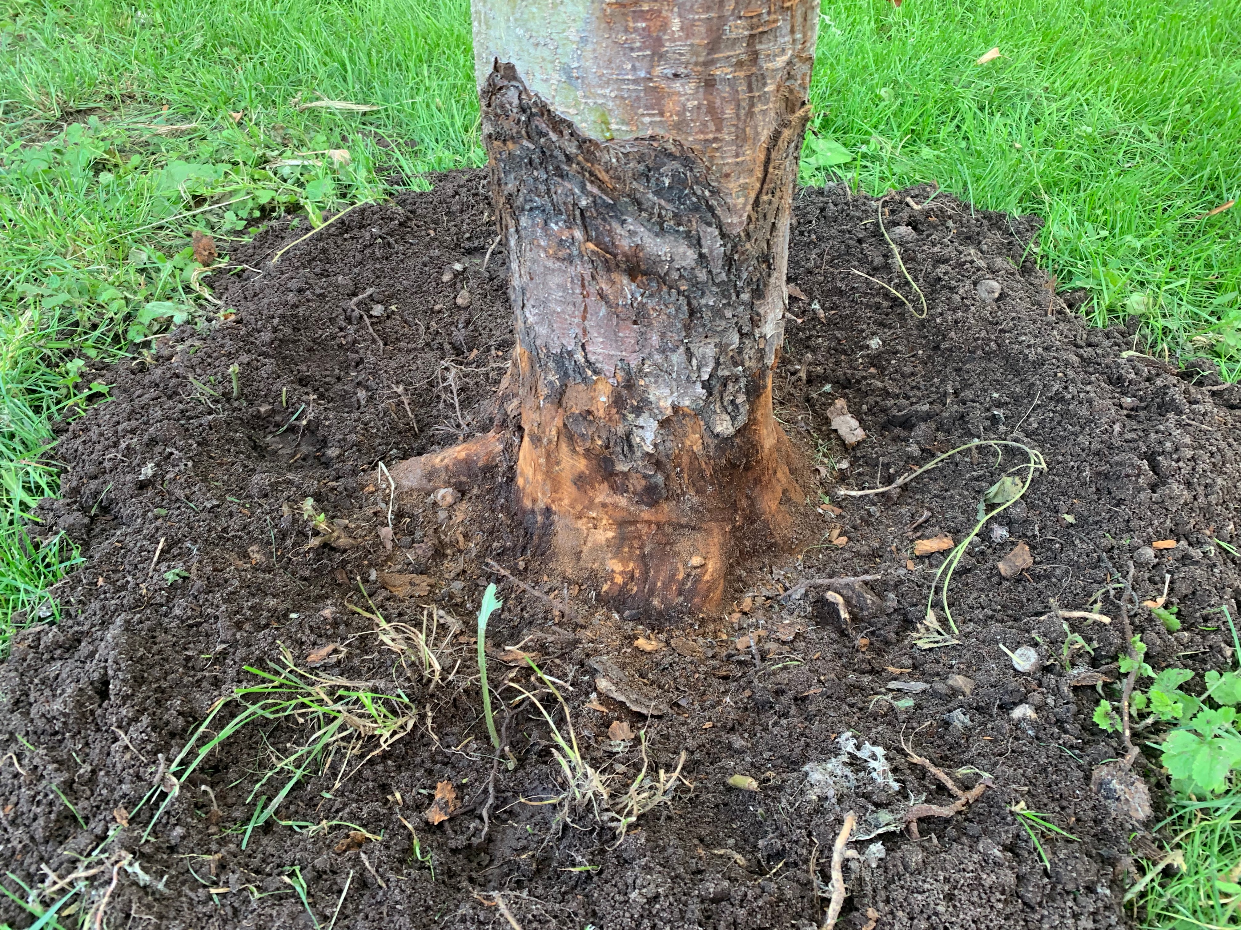 Mein über die Jahre hinweg gesunder, noch „junger“ Apfelbaum (9 Jahre) zeigt dieses Jahr einen gefährlichen Befall am Stammbeginn. Rundum fault die Rinde und sie wurde schon bewohnt von Kellerasseln. Ich habe nun das Unkraut darum entfernt um die Feuchtigkeit zu reduzieren und mit Brennesselsud die letzen Wochen behandelt, aber es ändert sich nichts. Im Gegenteil scheint die Krankheit schnell nach oben zu wandern.