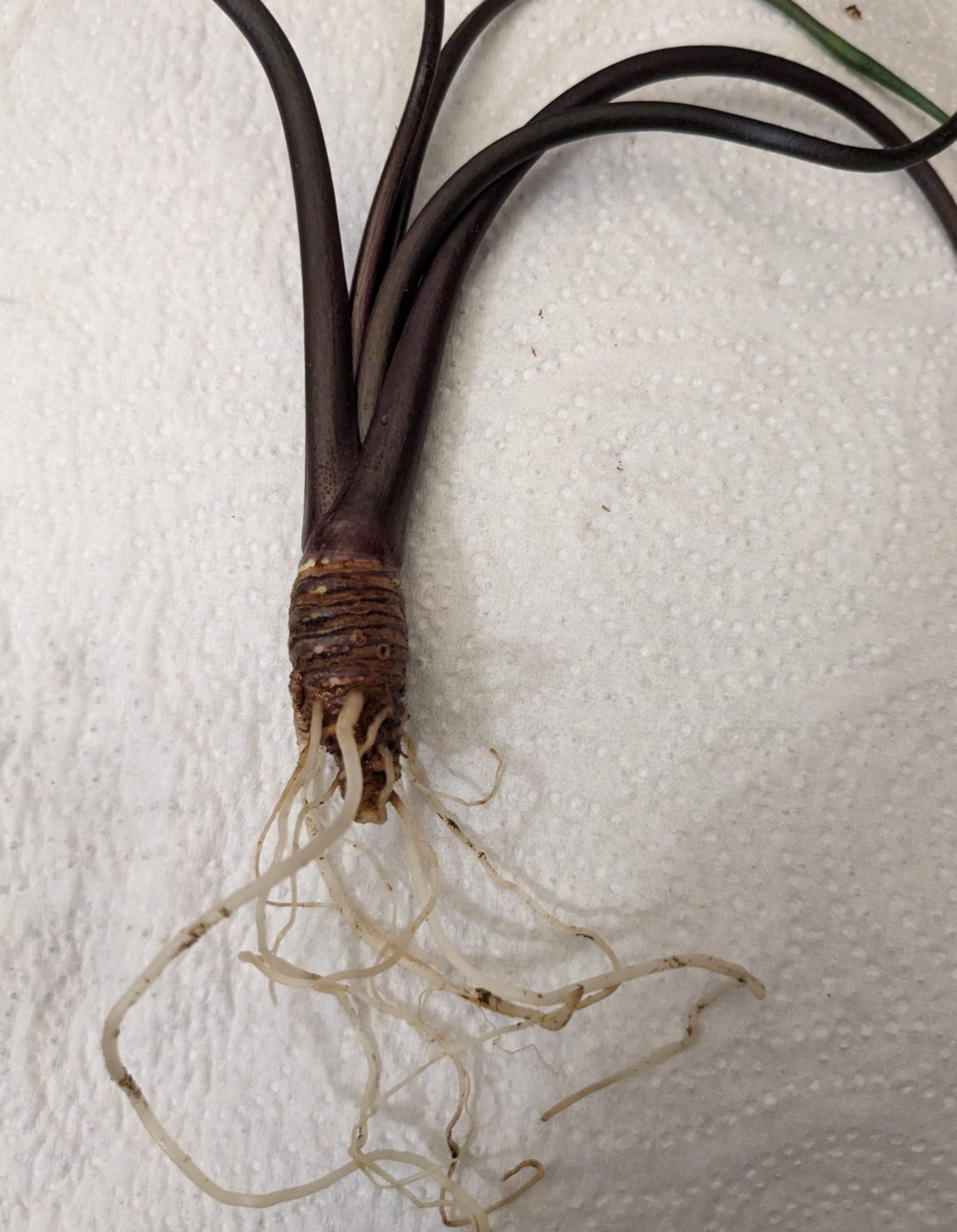 Ich wollte sie eigentlich gerade in Pon umtopfen. Nun frage ich mich aber, ob ich evtl. den unteren Teil abschneiden sollte (so dass nur noch 2-3 Wurzeln erhalten blieben), bin aber unsicher, welche Methode die besseren Überlebenschancen bietet. Hat jemand Tipps für mich? [img][/img]