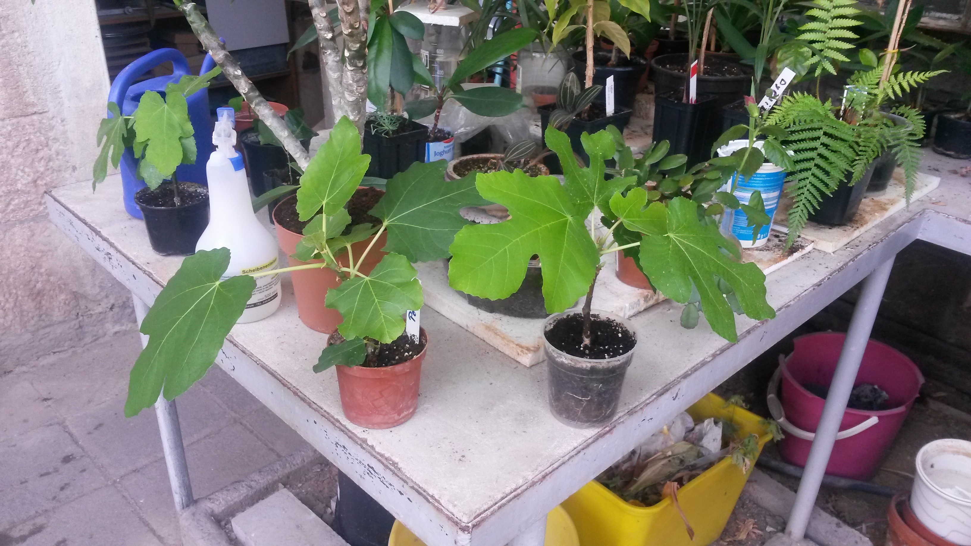 Ich habe auch ein paar kleinere Ficus.Meistens Kopfstecklinge aus dem letzten Herbst.Wenn ich Zeit habe mach ich mal ein paar Fotos.Hier nur mal ein Foto von Kopfstecklingen von Ficus carica der hier bei uns in Thüringen ins Freie ausgepflanzt ist.