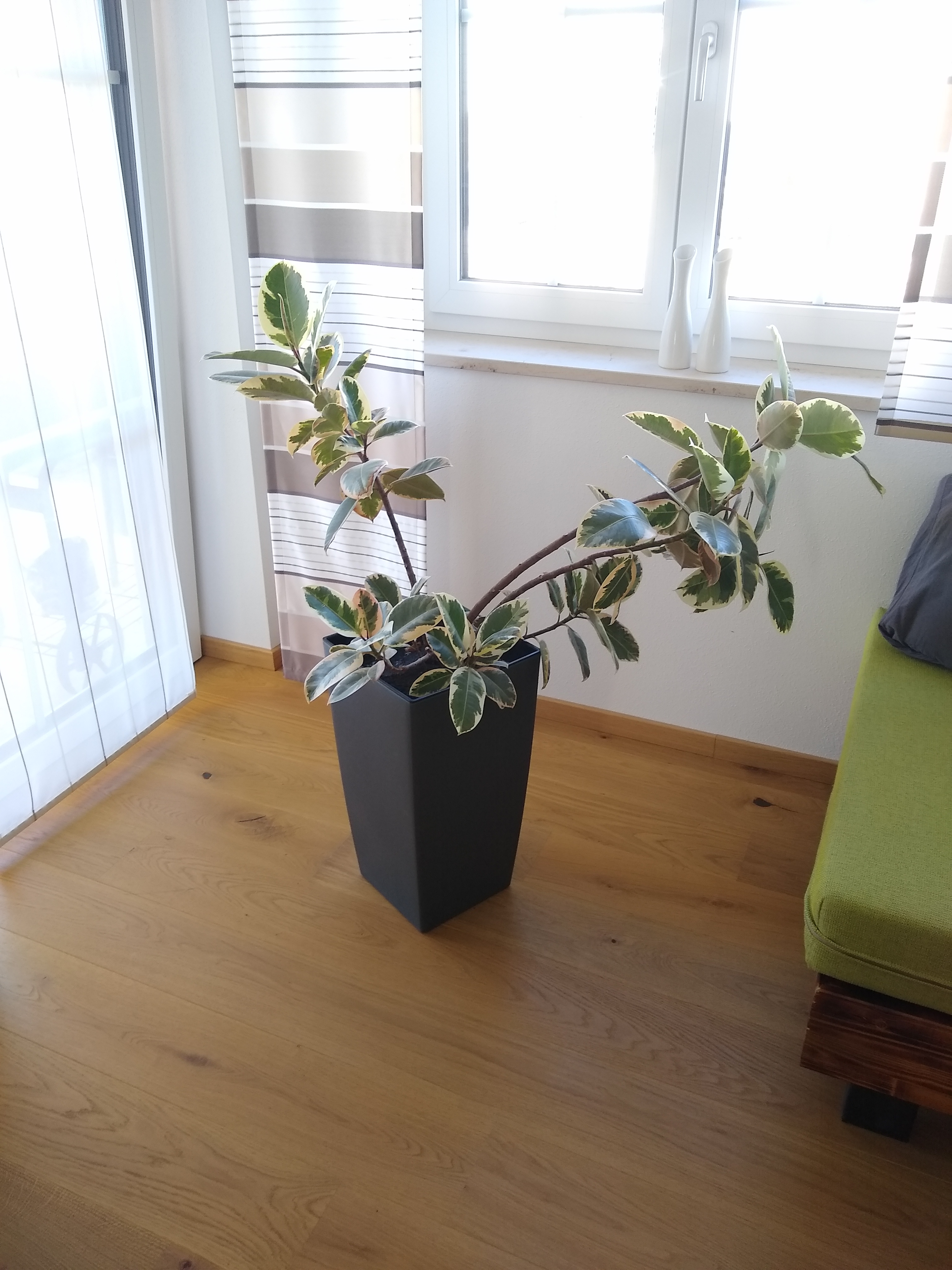 Schaut Mal, mein Ficus Elastica wächst und kindelt nach wie vor absolut ohne Pause. Der holt nun wohl alles nach was er in den Jahren an nicht vorhandener Pflege eingespart hat.