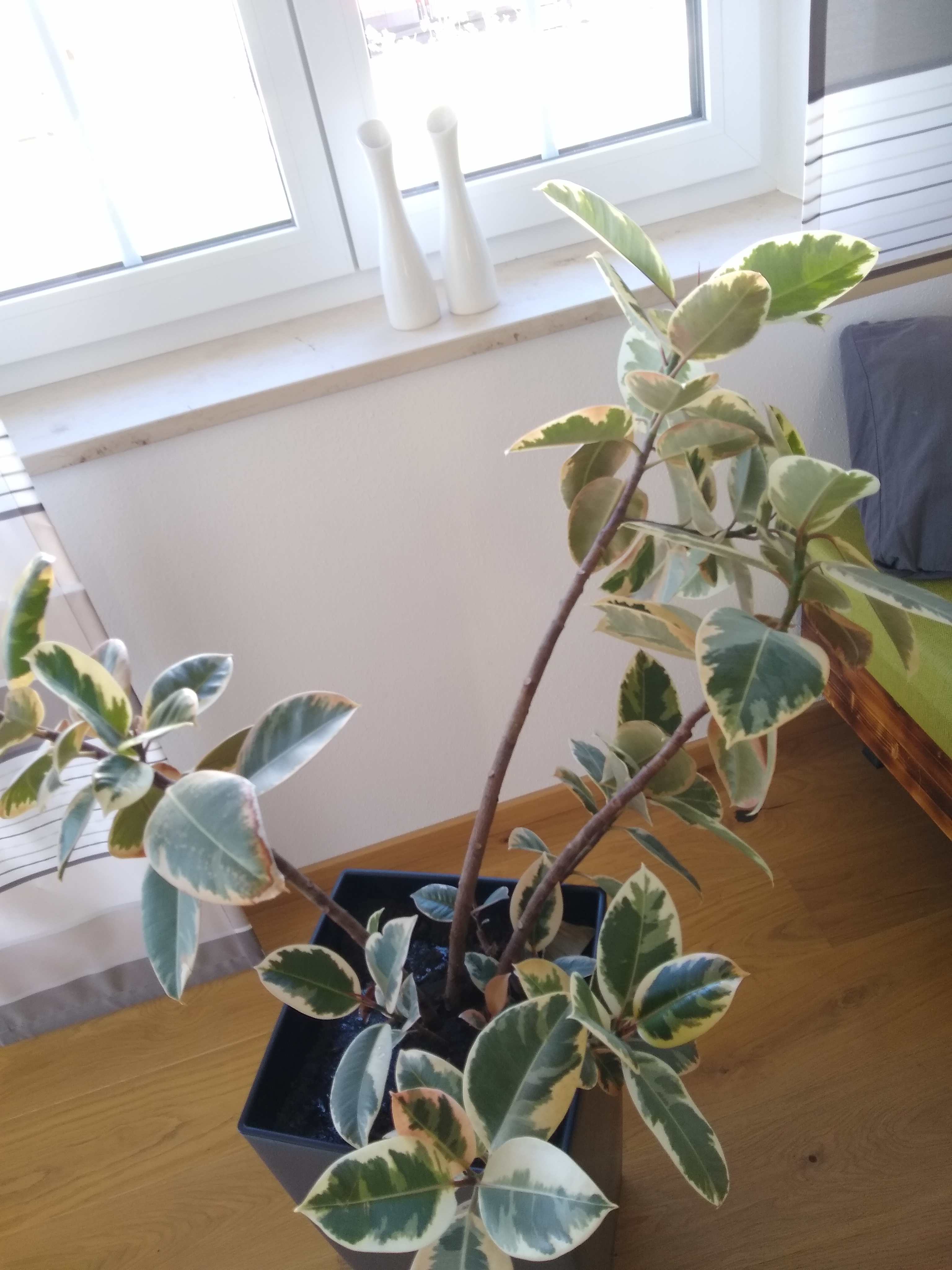 Schaut Mal, mein Ficus Elastica wächst und kindelt nach wie vor absolut ohne Pause. Der holt nun wohl alles nach was er in den Jahren an nicht vorhandener Pflege eingespart hat.