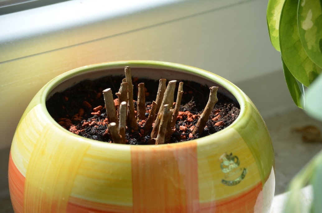 Ich wollte mal meinen totgeglaubten und überraschenderweise wieder auferstandenen Ficus mal zeigen. Ich hatte aus diversen Gründen letztes Jahr über lange Zeit völlig vergessen meinen Ficus zu gießen. Das Ergebnis war trockene Äste, trockene Blätter, die alle nur noch tot waren. Ich war kurz davor, ihn wegzuschmeißen, als ich auf die Idee kam ein Experiment zu machen. Ich habe ihn kurzerhand bis nach unten zurückgeschnitten, wie man auf dem ersten Bild sehen kann. Das war im August letzten Jahres. Auf dem zweiten und dritten Bild seht ihr, dass der kleine doch noch leben wollte