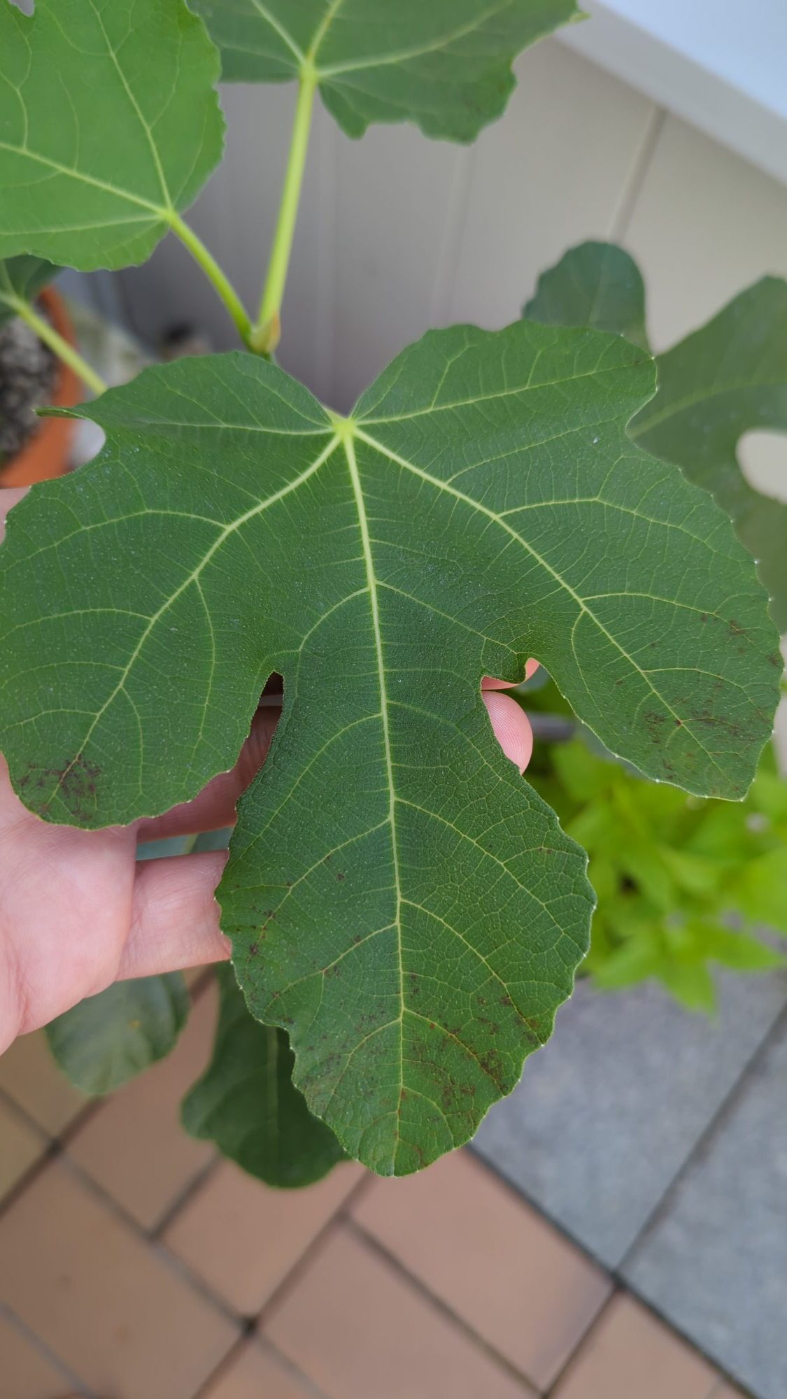 ich habe eine Frage. Mein toller Feigenbaum, den ich als Steckling bekommen habe, weist braune Stellen auf den Blättern auf. Ich kann mir nicht erklären, woher sie kommen.