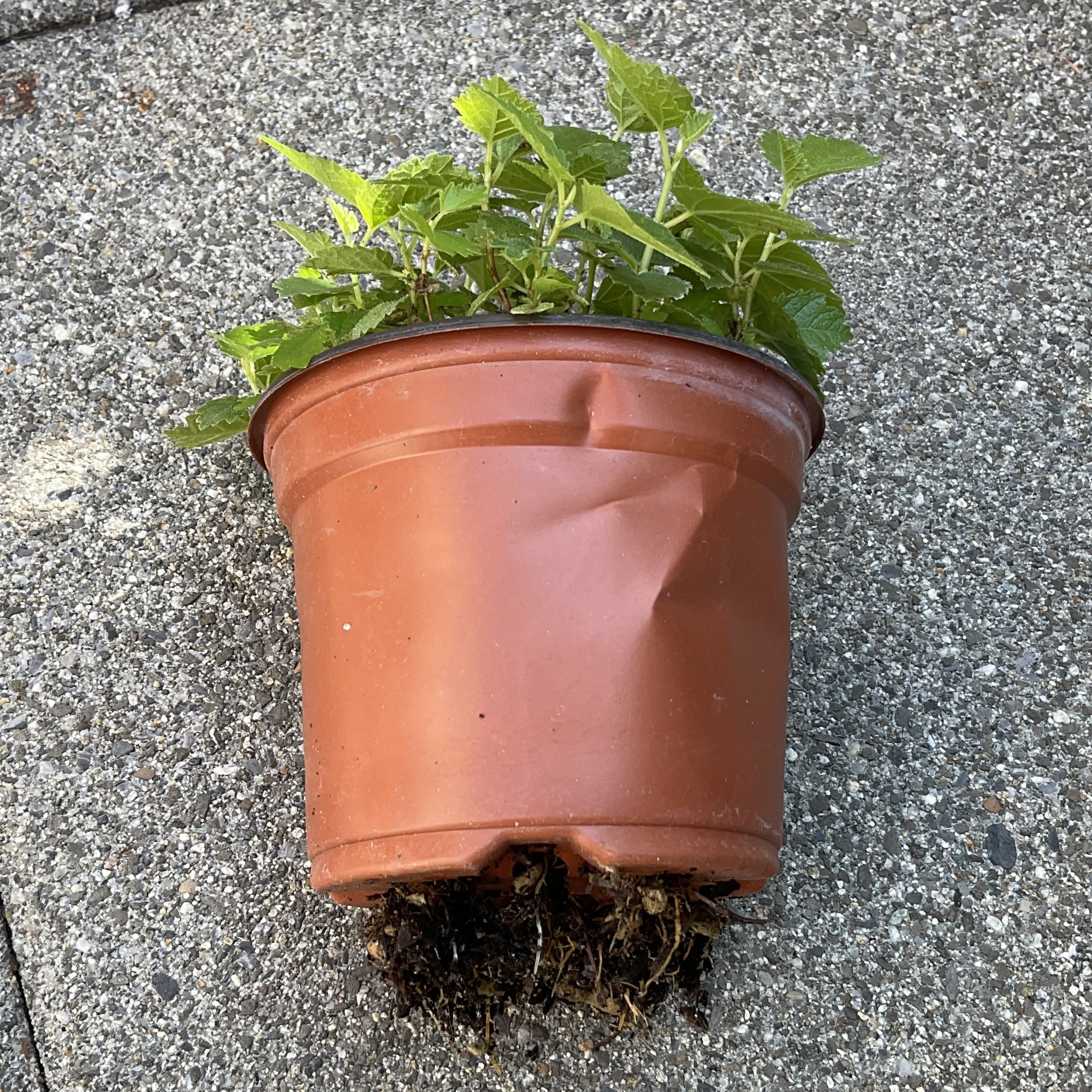 Ist er evtl schon zu groß für den Topf (eine Wurzel schaut bereits unten raus)?