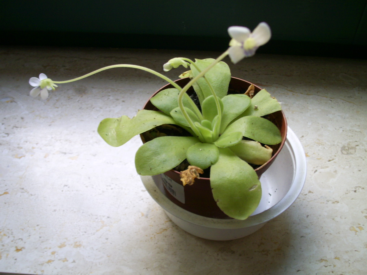 Hallo, ich hab seit etwa einem halben Jahr eine Pinguicula. Ich hab sie aus dem Gartencenter. Hab sie gekauft, weil mir die Trauermücken, die meine Orchideen scheinbar sehr gut mögen (aber nicht schädigen), tierisch auf die Nerven gingen. Statt Gelbtafeln (einer chemischen Bekämpfungsmethode) wurde dann ein Fettkraut draus. Sie fängt die Viecher ja mit den Blättern und saugt sie dann aus. Hab seitdem weniger Probleme mit den Fliegen.