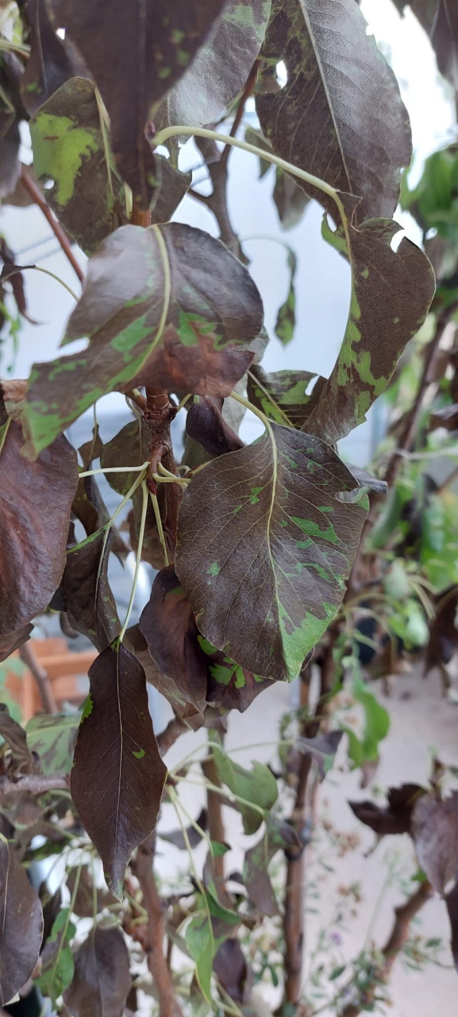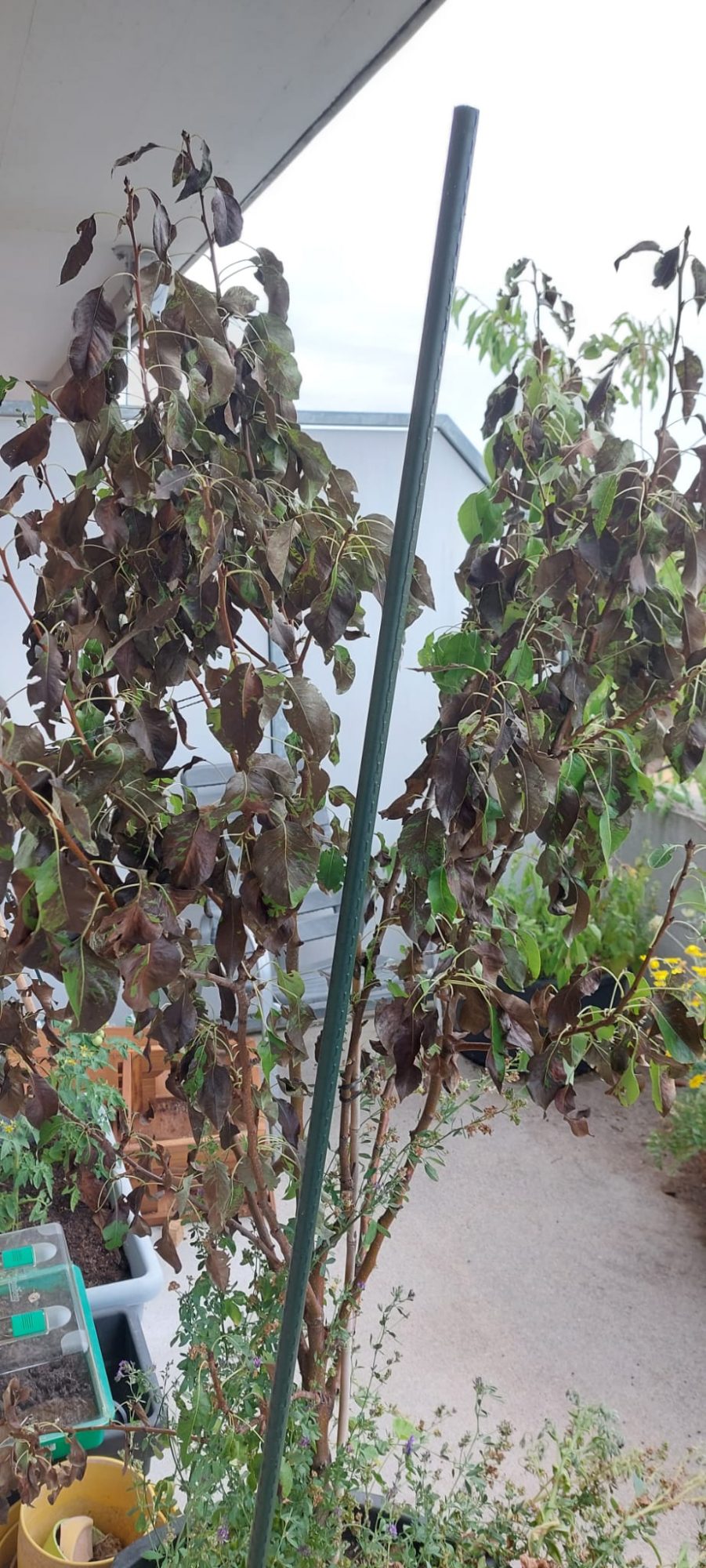 Ich habe eine Frage, Ich habe auf dem Balkon bei mir einen Birnbaum. Nach 1 1/2 Jahren bilden sich Schwarze Blätter. Nach 3 Wochen Ist der Baum nun komplett fast Schwarz.