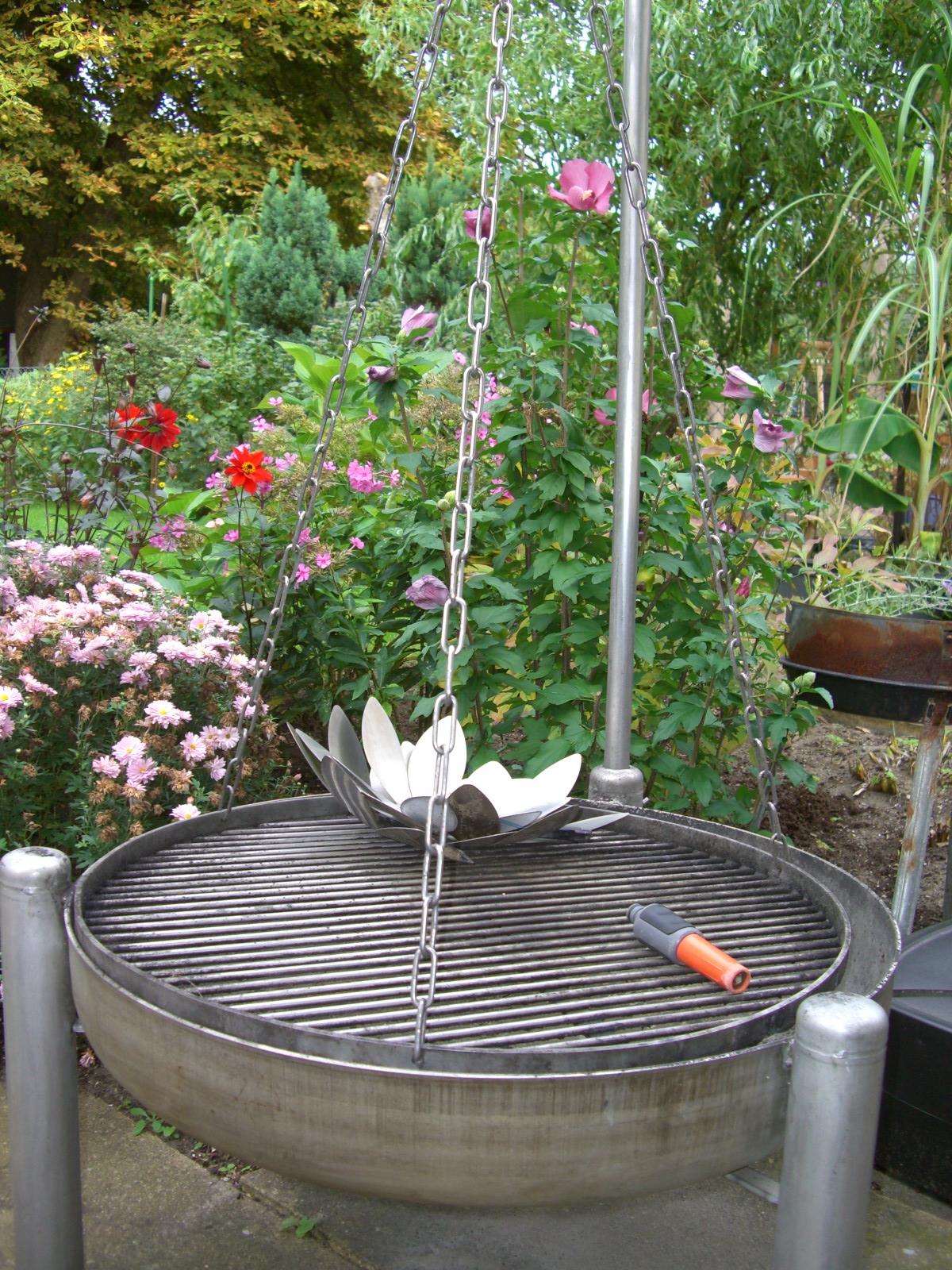Wir haben unsere Feuerschale aus einem Boilerboden gebaut. Hat ein Freund, der eine Firma "Schweißtechnik" hat, gemacht. Vielleicht kennst du ja Jemanden der sowas kann? Den Grillrost kann man abnehmen und die Schale hat ca. 80cm Durchmesser. Hat schonmal zwei Tage hintereinander Holz drin gebrannt und nix passiert. Allerdings wiegt das Ding sehr viel.