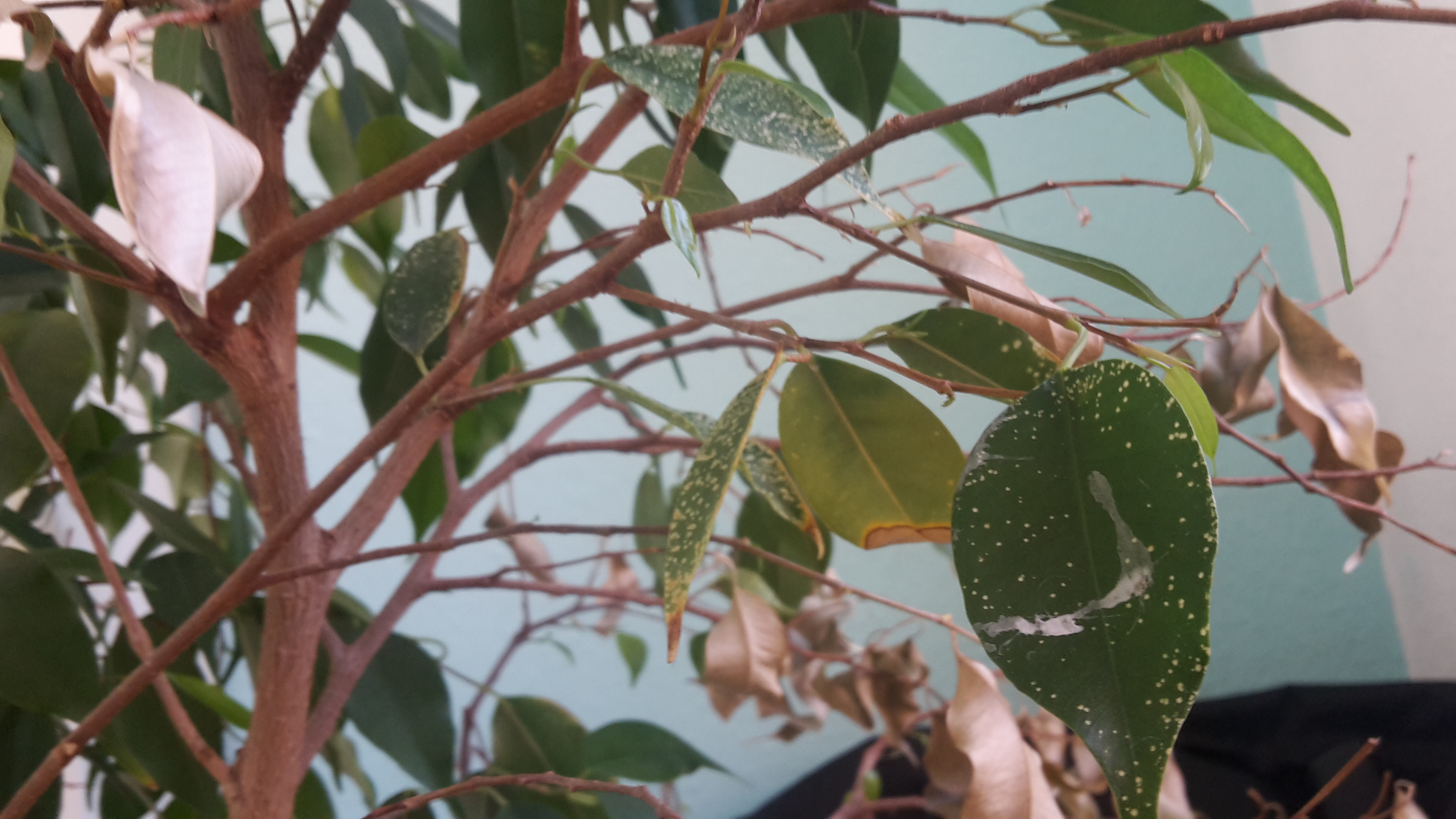 Seit ca 18 Jahren begleitet mich mein ficus benjamini und bisher lies er sich in schlechten Zeiten immer wieder aufpäppeln.