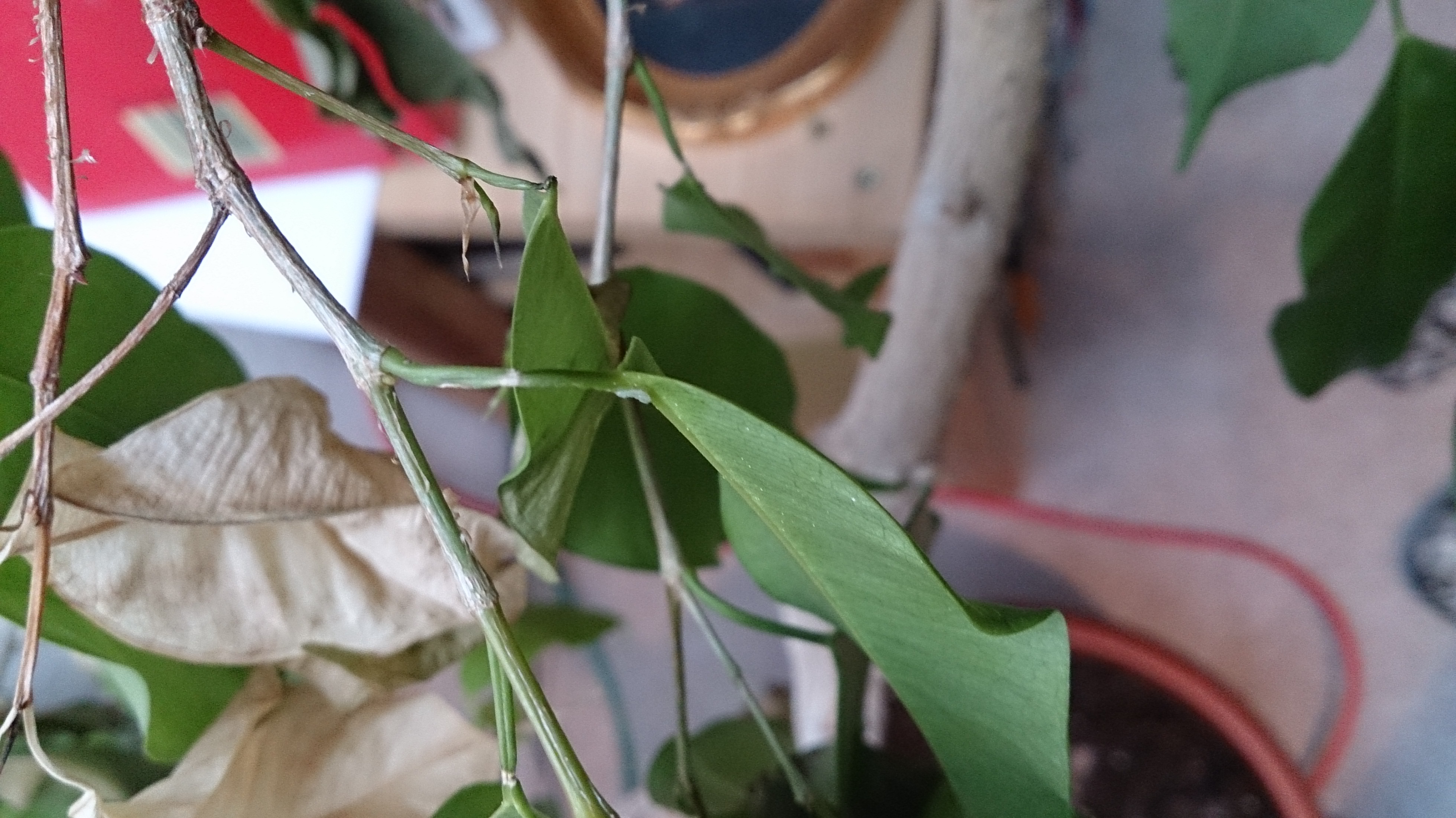 Könnten die hellen wächsernen Stellen an den Blättern (am Schaft Unterseite des Blattes) vielleicht Schildlauslarven sein?