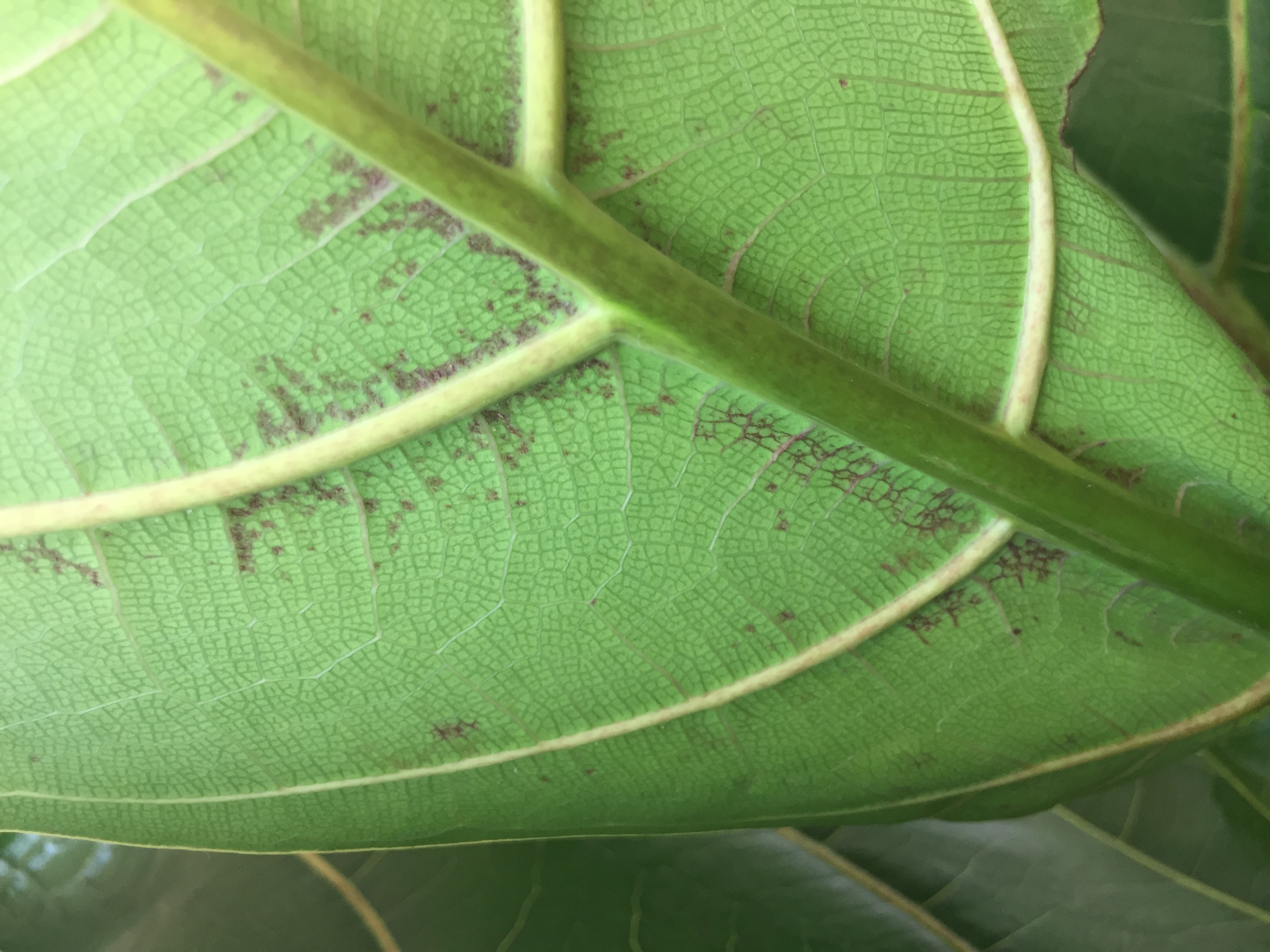 Ich habe mich am Samstag in eine geigenfeige verliebt und habe besagt flecken, die bei allen exemplaren im pflanzencenter vorhanden waren, keine Beachtung geschenkt. Nun mache ich mir schon Sorgen. Weiss jemand was hier das problem ist?