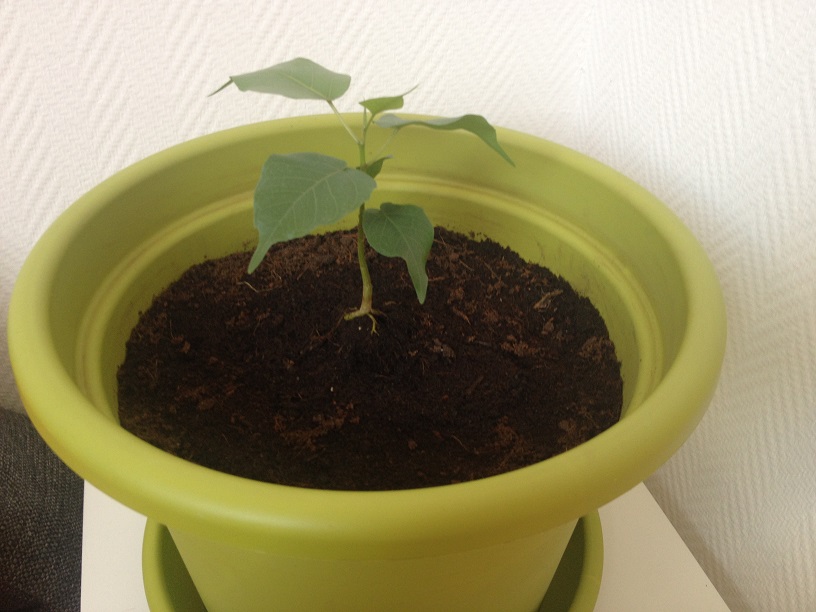 Wollte euch mein Ficus Religiosa zeigen! Er hat bis zur dieser Wachstumsphase sehr lange gedauert. Aus 100 Samen hat es gerade mal einer zu diesem Resultat geschafft. Im Zeitraum von 4-5 Monaten ist er zu einem 17 cm kleinen Bäumchen herangewachsen. Ich habe ihn extra etwas erhöht in den Topf gesetzt damit seine typischen Wurzeln etwas zu Geltung kommen. Beschnitten wurden bislang nur die sechs untersten Blätter. Jetzt lasse ich ihn erstmal in die Höhe wachsen. Fast wöchentlich bekommt er nun ein neues Blatt hinzu.