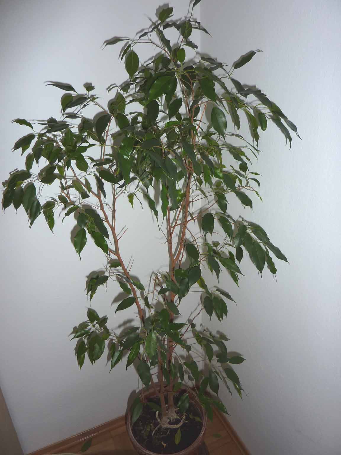 Er hat zwei Stämmchen mit vielen Seitentrieben. Zum Stamm hin sind die aber alle ziemlich verkahlt. An den Enden wachsen sie eh gut. Ich hätte ihn nur gerne wieder buschiger.