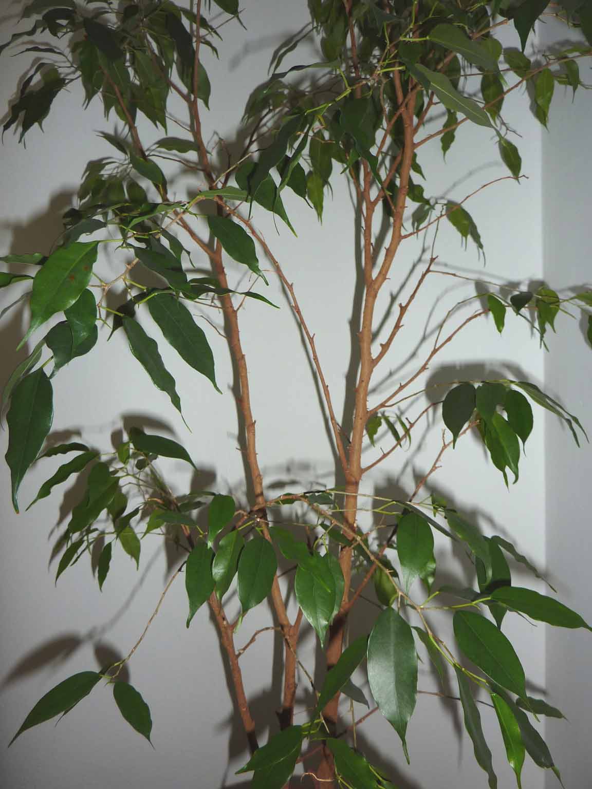 Er hat zwei Stämmchen mit vielen Seitentrieben. Zum Stamm hin sind die aber alle ziemlich verkahlt. An den Enden wachsen sie eh gut. Ich hätte ihn nur gerne wieder buschiger.