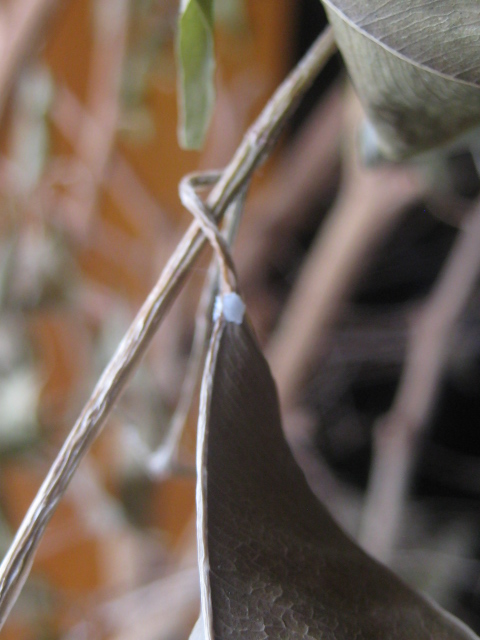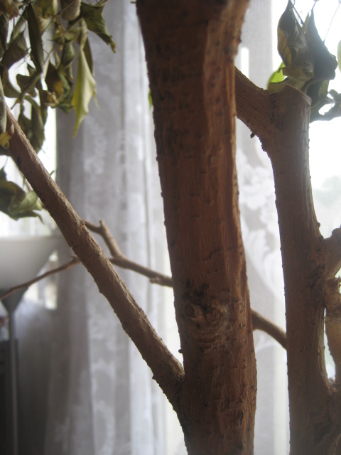 da hab ich noch paar fotos, also bevor er bläter verliert hat, hat sich kommisches zeug am bläter gebildet (sihe foto) dann werden sie braun und trocknen aus und fallen ab auch die grüne fallen ab sobald dieser wachs gebildet hat........ und der stam sieht auch aus als ob er austrocknen würde, er zieht sich zusamen (siehe Bild) ich hab ihn jetzt durchnässt,gedüngt und überschusiges wasser entfernt mal schauen was dann passiert