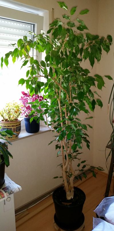 gestern bekam ich einen neuen "Patienten" ein Ficus. Ich denke eine gute Basis. Aber er kann nich allein stehen, musste ihn anlehnen, der Topf ist viel zu klein, unten kommen schon die Wurzeln raus. Und eine richtige Form hat er derzeit auch nicht.