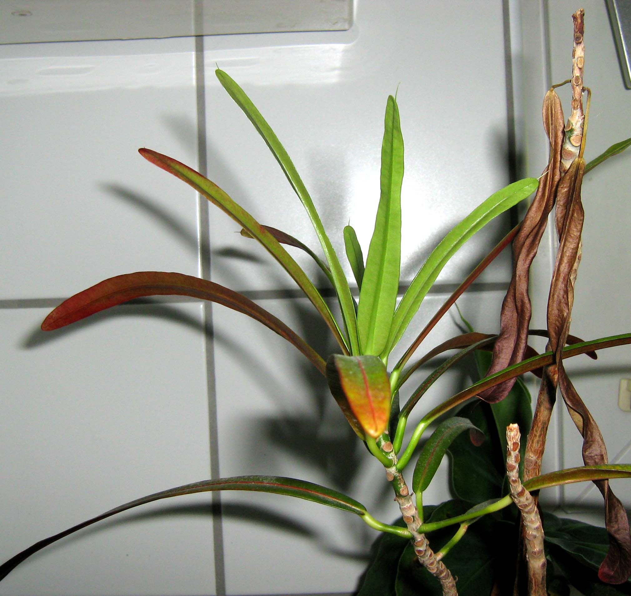 Cloud, was ist denn passiert? Ich habe meine Fingeraralie vor Kurzem auch fast umgebracht, weil ich sie zu viel gegossen hatte (und noch dazu umgestellt und umgetopft). Jetzt steht sie wieder am alten Platz, ich gieße wieder wenig, und sie treibt neu aus, siehe Foto. Bei denen sollte man nicht so schnell die Hoffnung aufgeben.