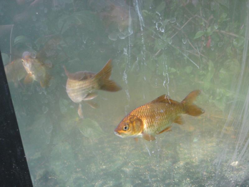 es sind eindeutig Goldfische und keine Karauschen, das sieht man auch an der Form der Rückenflosse.
