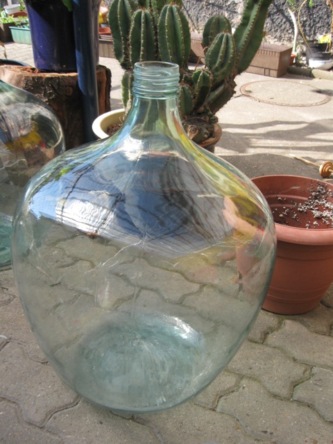 Wow, das sieht ja klasse aus! Ich hab als "Flasche" einfach ein großes Gurkenglas mit Deckel genommen weil ich nirgends günstig so Flaschen finden konnte. Habe allerdings auch in das kleinere Glas einen kleinen Kaktus in Seramis gesetzt und in das größere Glas hab ich auch in Seramis so Bodendecker aus dem Garten rein gesetzt. Naja ok das große Glas fasst auch nur 500ml! Aber es sollte auch nur ein lustiges Geburtstagsgeschenk sein für ne Freundin die es absolut nicht mit dem Gießen hat.
