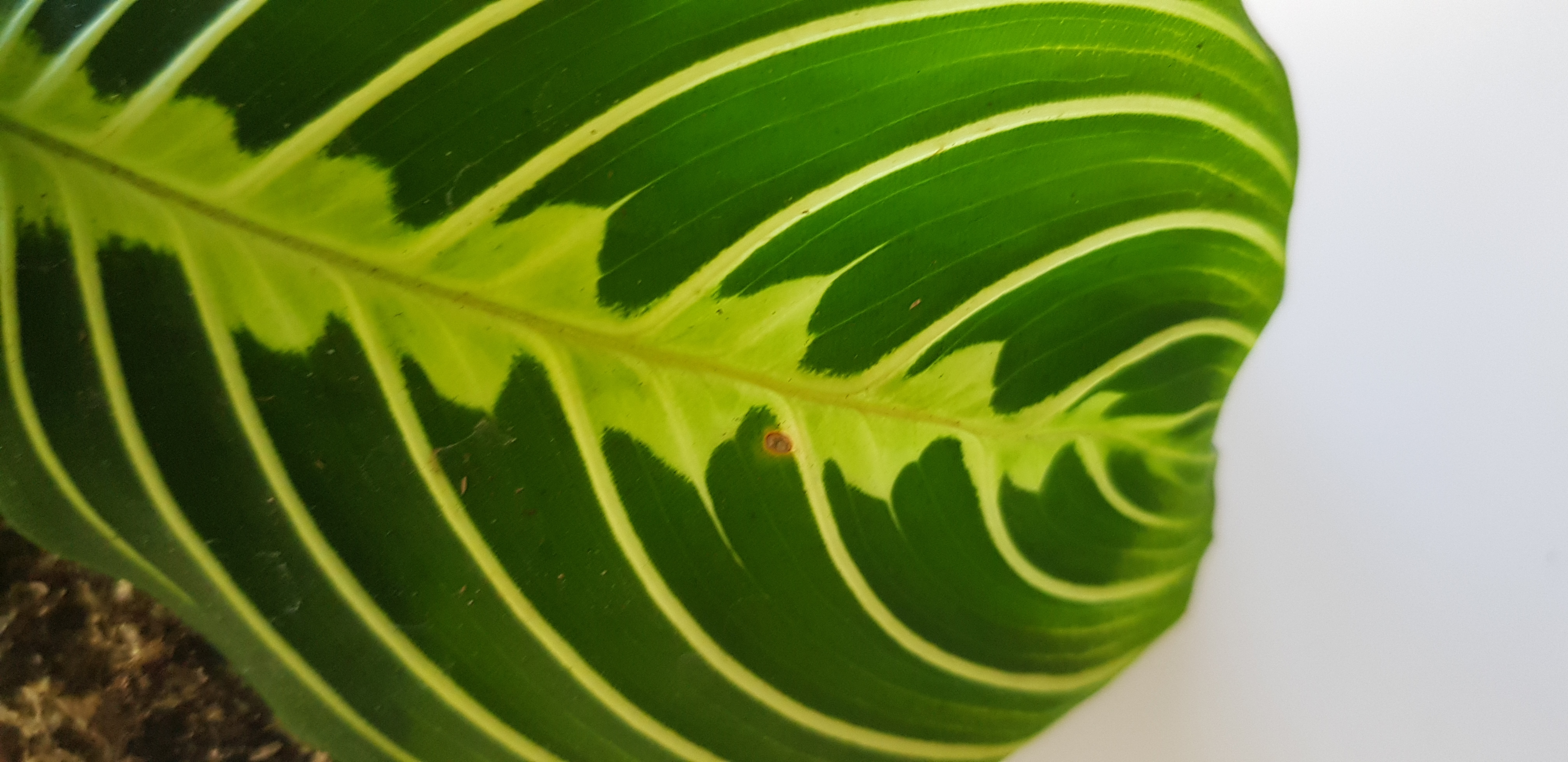 folgendes:vor ca. 2 Wochen kam diese Maranta Lemon Lime bei mir an. Auf einigen der Blätter habe ich nun bräunliche/orangene Fleckchen entdeckt. Schädlinge kann ich eigentlich ausschließen, da ich sie nun mehrmals nach Thripsen, Läusen und Milben untersucht habe und dabei nicht fündig würde. Mir ist aufgefallen, dass diese Fleckchen mal mehr mal weniger auch schon auf den neuen, sich ausrollenden Blättern zu sehen sind. Was könnte die Ursache sein? Ich dachte zunächst an geringe Luftfeuchtigkeit als Auslöser aber diese äußert sich ja eher durch trockene Blattspitzen/Blattränder. Könnte das auf Transportschäden zurückzuführen sein oder ein Pilz?