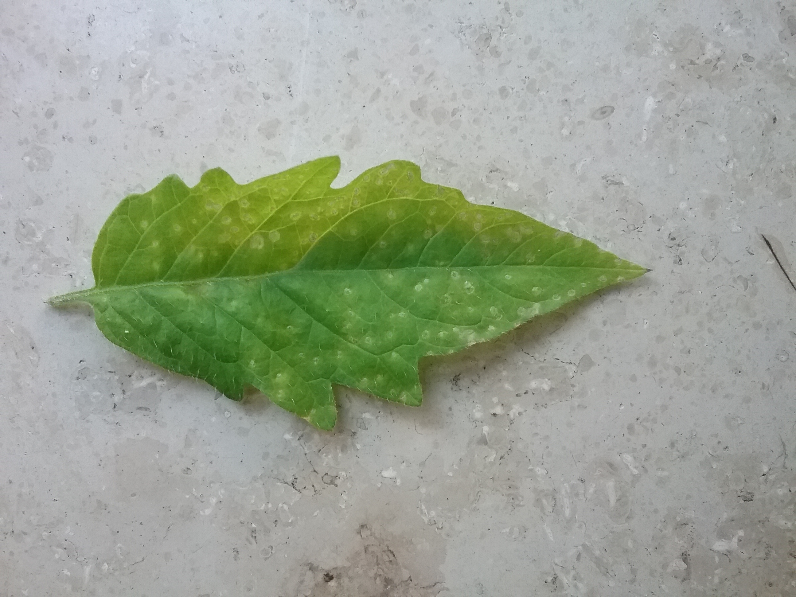 habe komische Flecken auf meiner Tomatenpflanze.