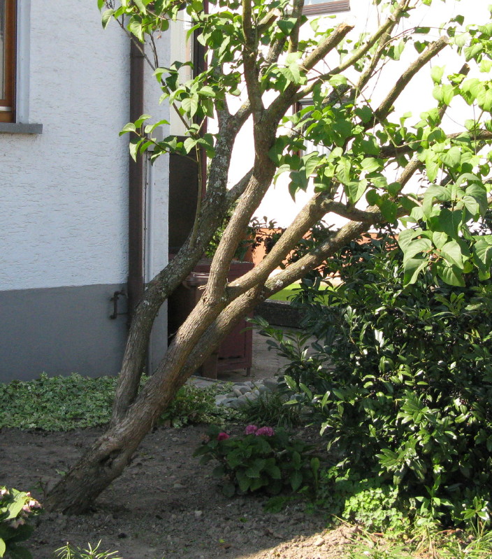 Du kannst nämlich nur alle paar Monate den Abstand an dem Seilspanner verkürzen, insofern könnte es ein paar Jahre dauern, bis der Flieder wieder gerade steht.