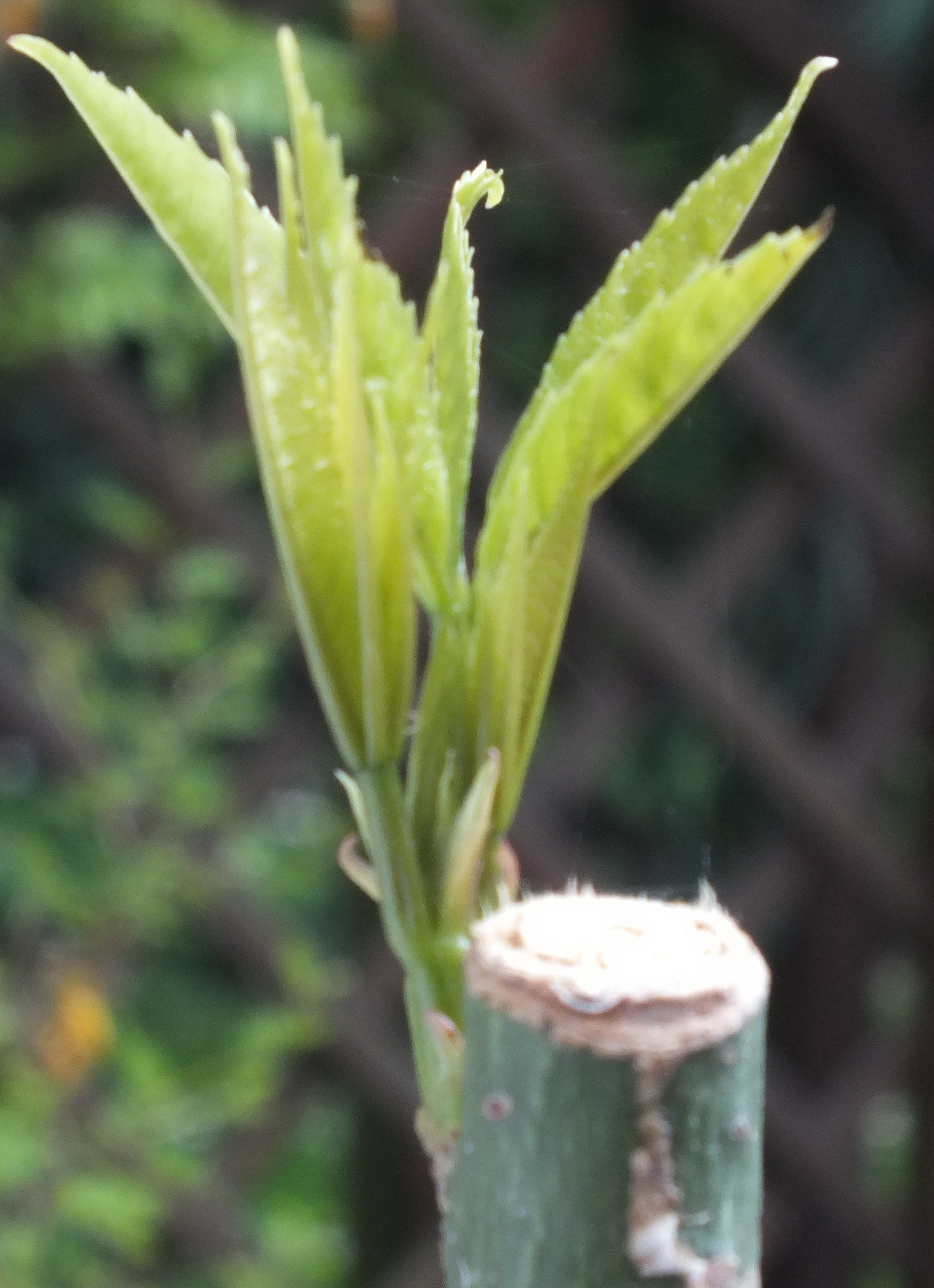Meine Frage nun, würde gerne 100-120 cm abschneiden, damit er dann draußen beim Neuaustrieb nicht noch länger wird, aber dann ist er kahl . Schon mal jemand gemacht? Treibt er dann tiefer neu aus?