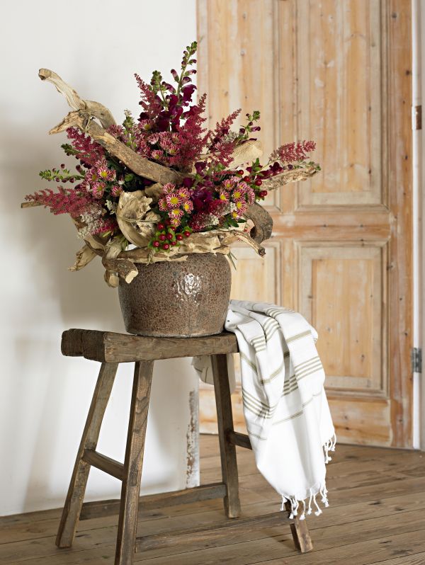 Dann kommen die floralen Inspirationen des Herbstes 2009 ja genau richtig. Längst haben neutrale Farbtöne wie Tabak, Taupe, Schoko oder Sand Einzug in die Wohnungen gehalten und nehmen hellem Weiß die kühle, distanzierte Note. Weiß wird mit unterschiedlichen Brauntönen und naturbelassenen, unbehandelten Materialien kombiniert und erscheint dann hell und heimelig. Der Vorteil: So ein Ambiente strahlt Natürlichkeit und Ehrlichkeit aus. Und genau das verbinden wir mit einem glücklichen, romantischen Leben auf dem Land und es ist genau dieses Lebensgefühl, das uns zur Zeit fehlt.