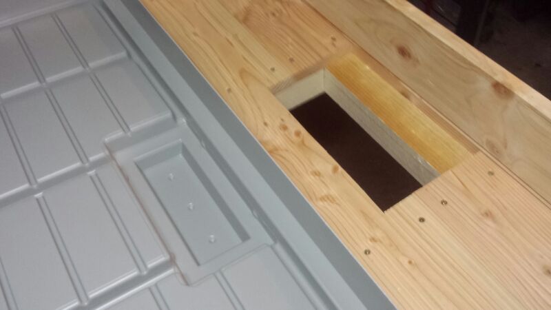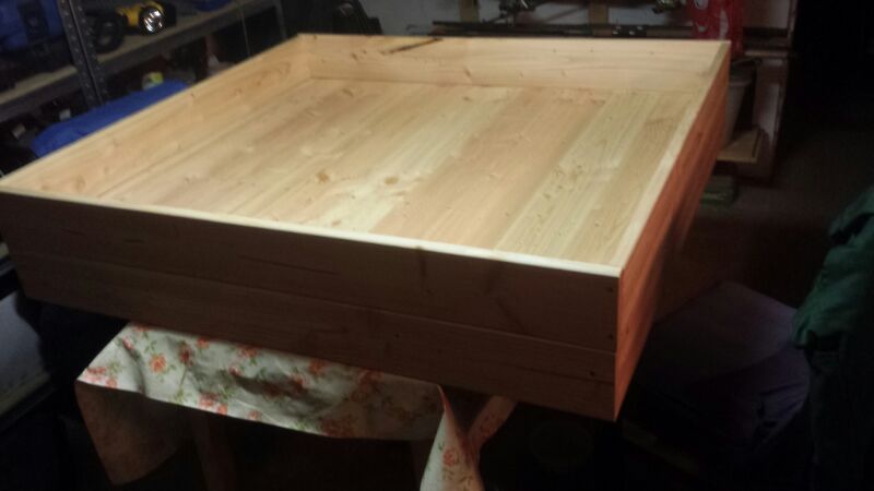 Fuß des Tisches mit Einlage für den 70 Liter Tank.