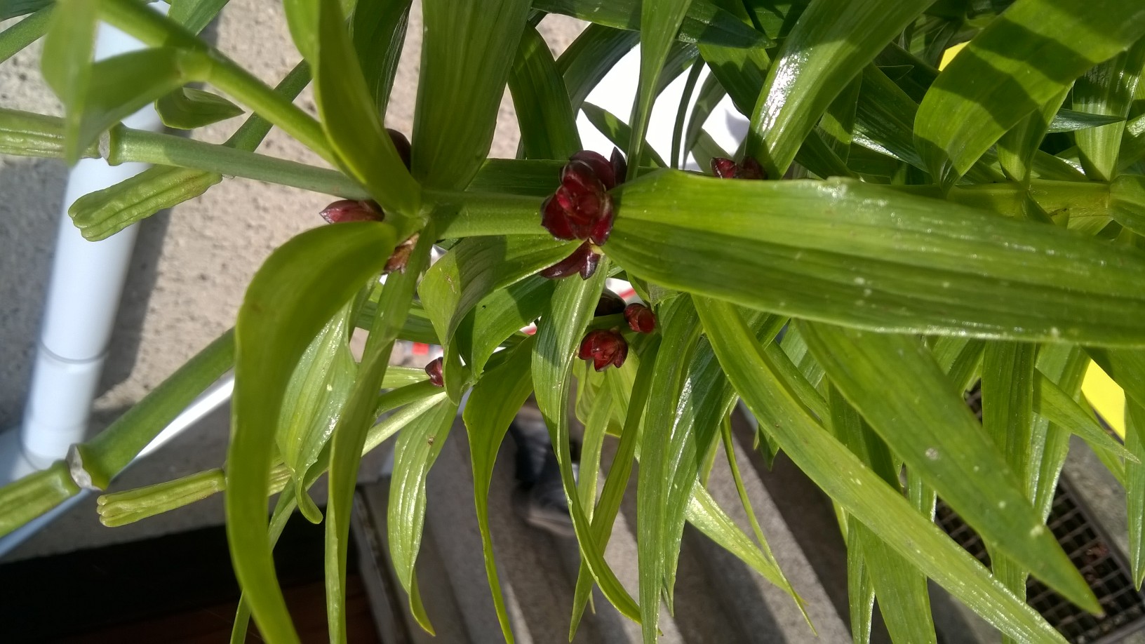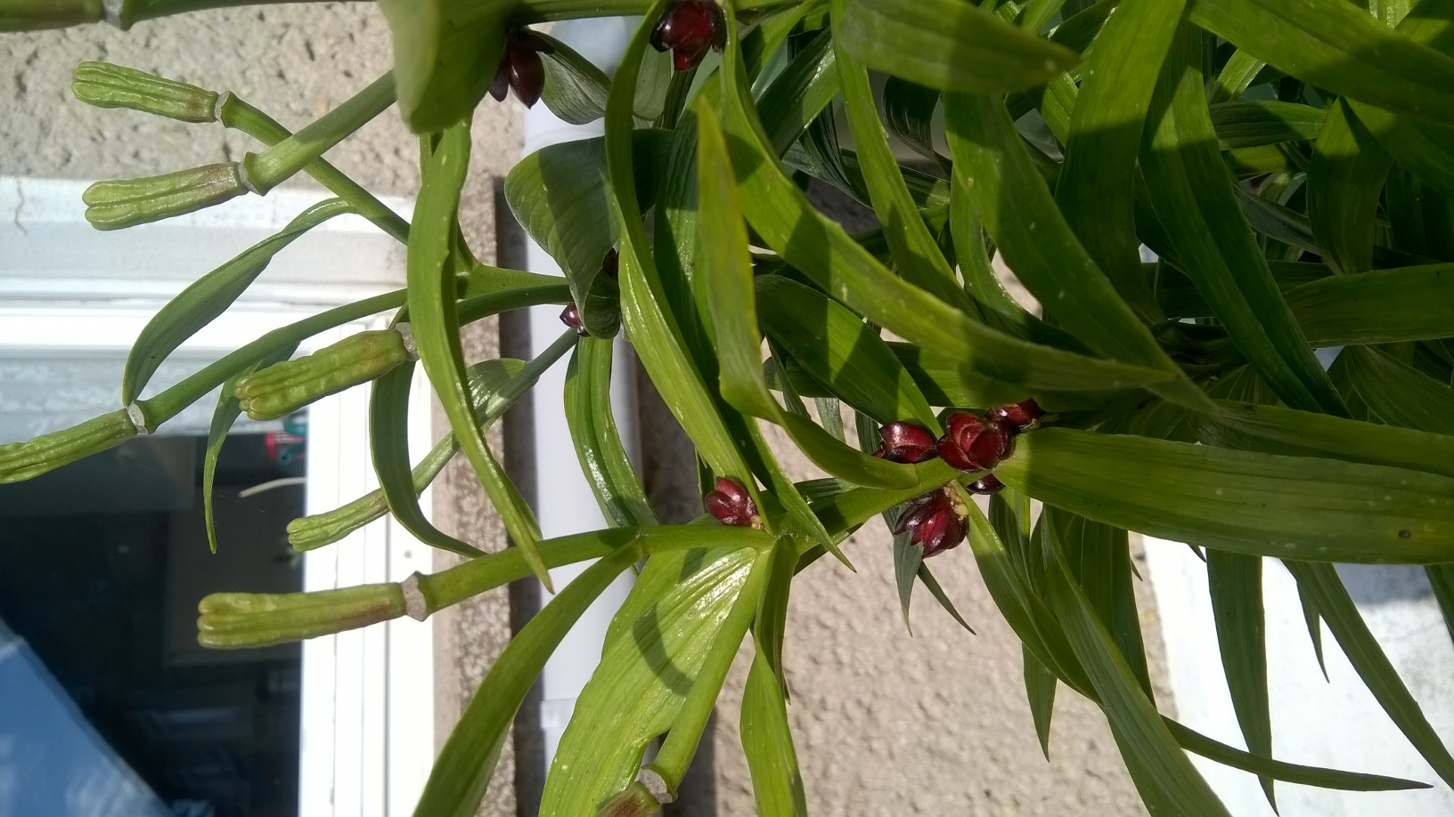an einer abgeblühten Lilie befinden sich rotbraune "Knubbel"