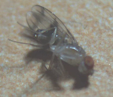Essigfliegen),mit 3-4 dunklen Streifen auf dem Flügel.Siehe Foto !