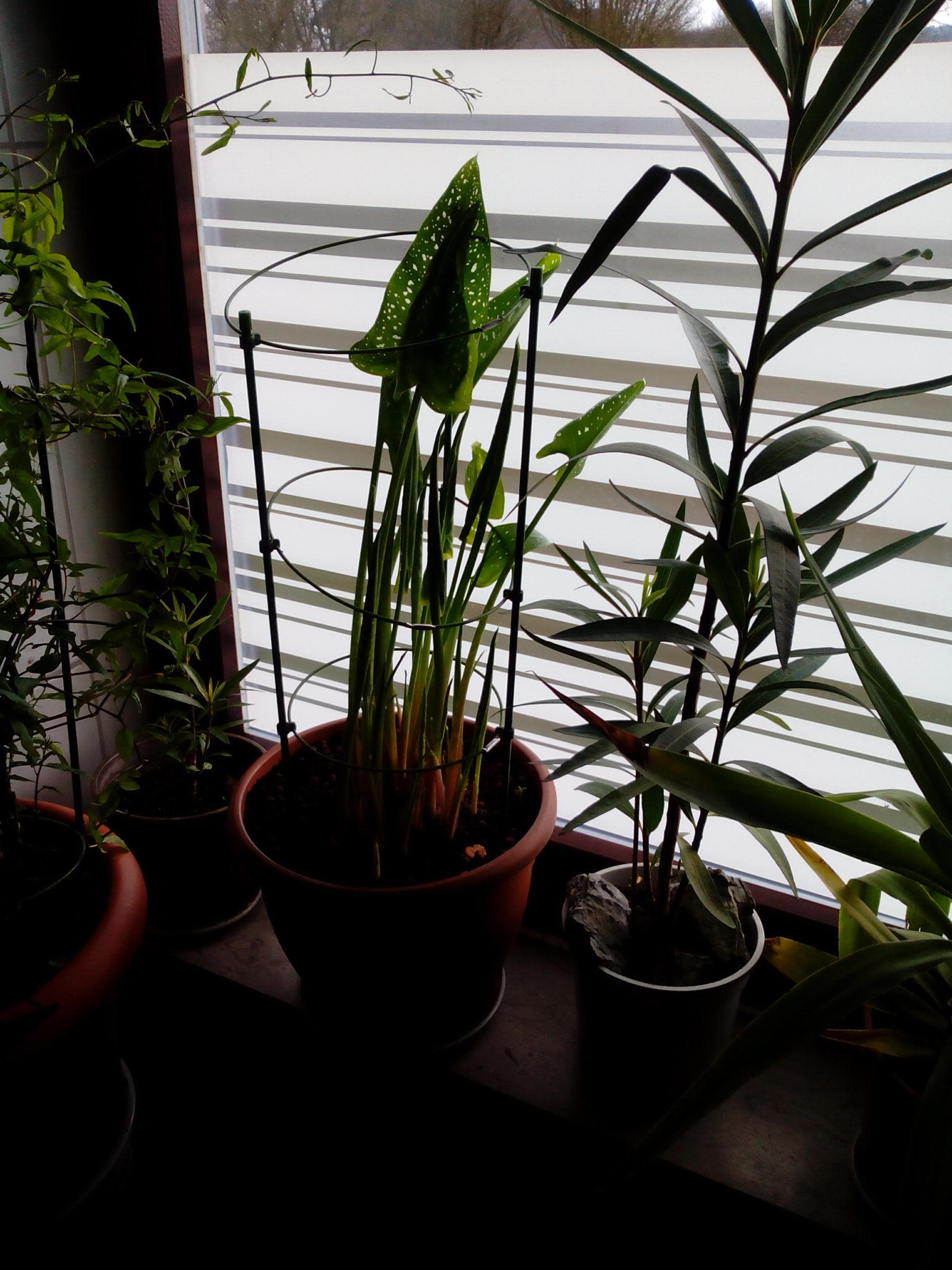 Die Knolle ist seit Oktober in die Erde und im Winter stand sie unter eine Pflanzenlampe sogar. Dünger bekommt sie auch. Am Anfang fürs Wchstum und jetzt für die Blüte.