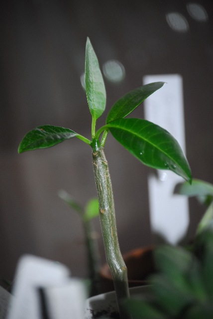 denn die Hälfte meiner großen Plumis sieht nicht gar nicht gut aus und 5 Pflanzen sind auch schon im Plumi-Himmel . Die gehimmelten Pflanzen bekamen einen matschigen Stamm, da war nichts mehr zu retten, denn das Braune hatte sich schon ausgebreitet und ein Stecki mit 5 cm würde wahrscheinlich gar keine Wurzeln bekommen. Alle hatten den gleichen Überwinterungsplatz wie immer, also hell, trocken und mit Temperaturen zwischen 15° – 18°, auch hatten sie die gleiche Pflege wie in den vergangenen drei Jahren, das heißt alle paar Wochen bekamen sie mal winziges Schlückchen Wasser. Bleibt nur noch zu hoffen, dass der Rest überlebt, ein paar Kandidaten sind allerdings noch dabei, wo ich mir nicht so sicher bin, dass sie es schaffen .