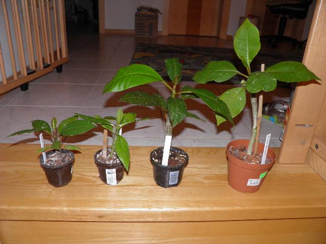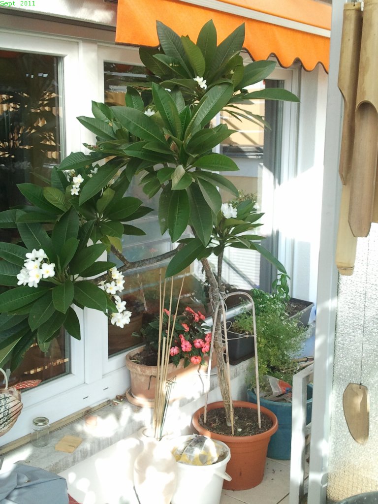 Hmmm - soo leid mir die Blüten ja auch tun - aber das vergangene verlängerte und noch trockene Wochenende habe ich nun doch genutzt, die Plumies wieder reinzuholen und sie auf ihren Überwinterungsplatz zu stellen. Ich hatte schon im September angefangen, weniger zur gießen, um die Plumies auf die kommende Trockenzeit vorzubereiten, aber die Knospen wurden trotzdem weiterhin größer und wurden zu Blütendolden. Seit die Plumies drin stehen, werden fast jeden Tag von unten beginnend Blätter gelb und fallen ab, so, als ob sie nur darauf gewartet hätten, ein Signal dafür zu bekommen. Für mich gibt es jetzt weiter nichts zu tun als abgeworfene Blätter und Blüten aufzusammeln, einmal im Monat etwas Wasser zu geben und die nächsten 7 (!!!!) Monate abzuwarten.....
