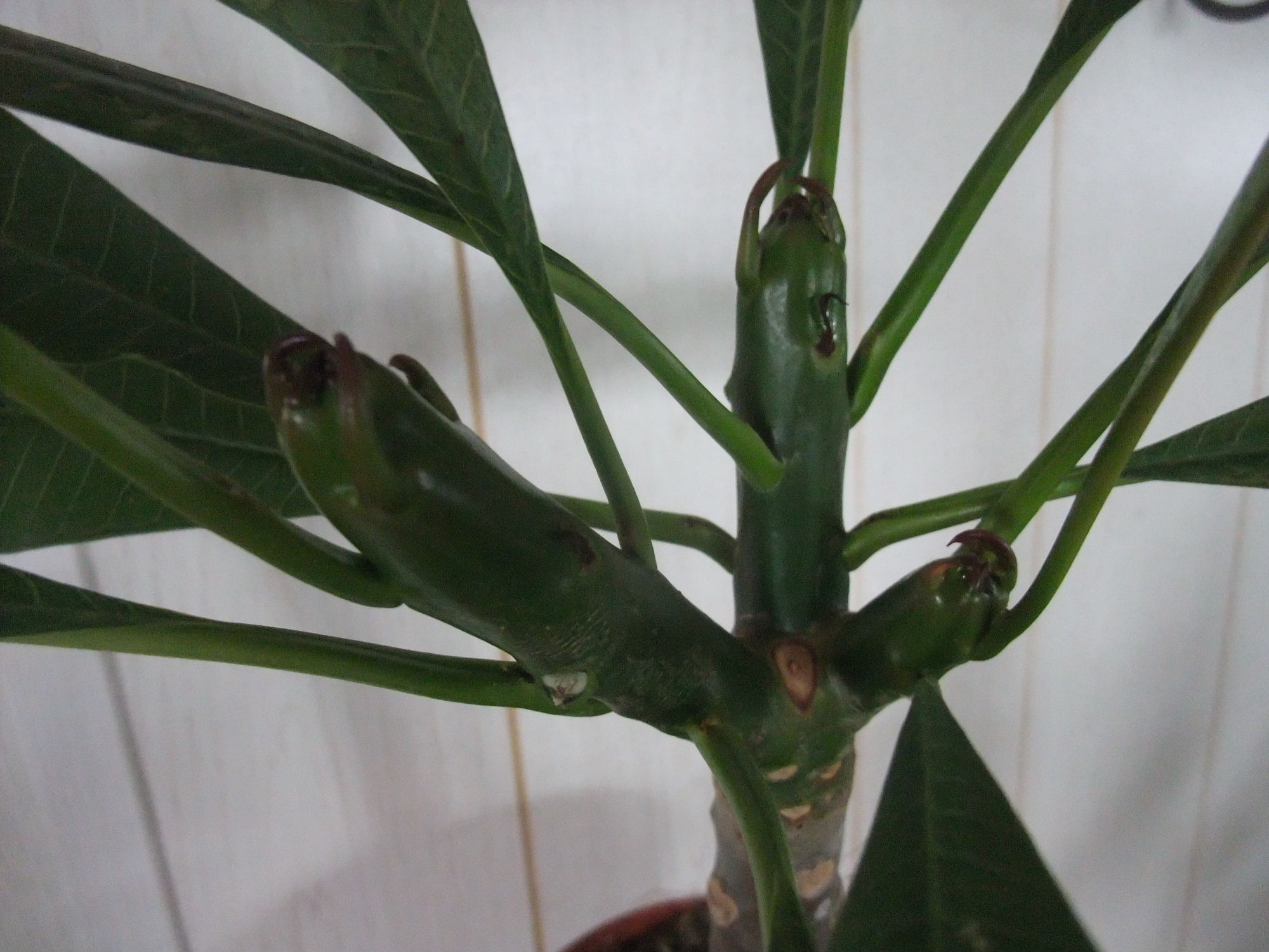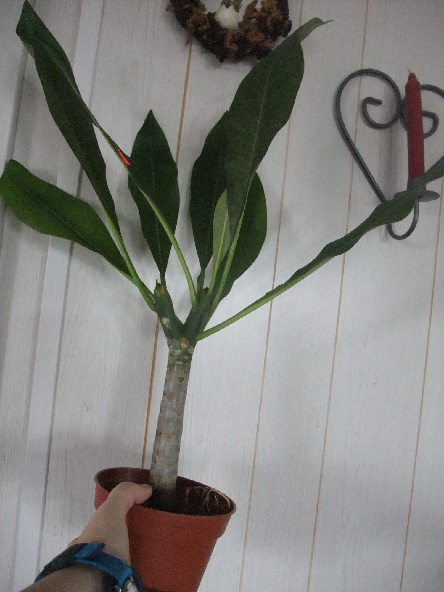 ich hab ca eine 40 cm große plumeria. Sie bekommt bei mir nicht oft Wasser. Ich hab sie direkt unter dme Fenster stehen neben meiner Heizung. Die Heizung hab ich bis jetzt nur wenig an und der Plumi hat es auch noch nciht geschadet. Ihre Blätter strahlen immer noch strahlend grün.