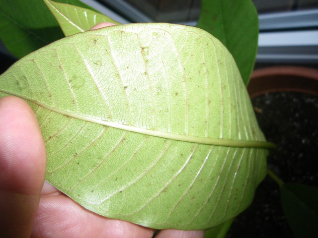 Hallo zusammen, ich bin neu hier und habe mit viel Interesse eure Beiträge gelesen. Ich habe letzten Sommer einen Steckling von Hawaii mitgebracht, den ich einfach in normale Blumenerde gesteckt habe. Inzwischen weiß ich auch, dass der Topf viel zu groß war...Nichtsdestotrotz bekam der Stecki Blätter, überlebte die Winterruhe und treibt fleißig wieder aus. Das hat mich so begeistert, dass ich mir drei weiter Plumis bestellt habe und mich in Bezug auf Pflege versucht habe schlau zu machen... Alle Pflanzen stehen im Wintergarten - das Wetter ist ja mehr als mies -, wo sie in Bezug auf Licht und Luftfeuchtigkeit gute Bedingungen haben, werden wenig gegossen, bekommen ein bisschen Dünger und sehen eigentlich gut und kräftig aus. Bis auf die merkwürdigen braunen Blattflecken, die mein "Hawaiian Original" und auch eine der neuen Pflanzen haben. Da ich Angst hatte, die Pflanzen könnten sich mit Spinnmilben infiziert haben, habe ich sie mit "Axoris Insektenfrei" eingesprüht, das von Plumerien gut vertragen werden soll. Könnte das die Flecken verursacht haben?